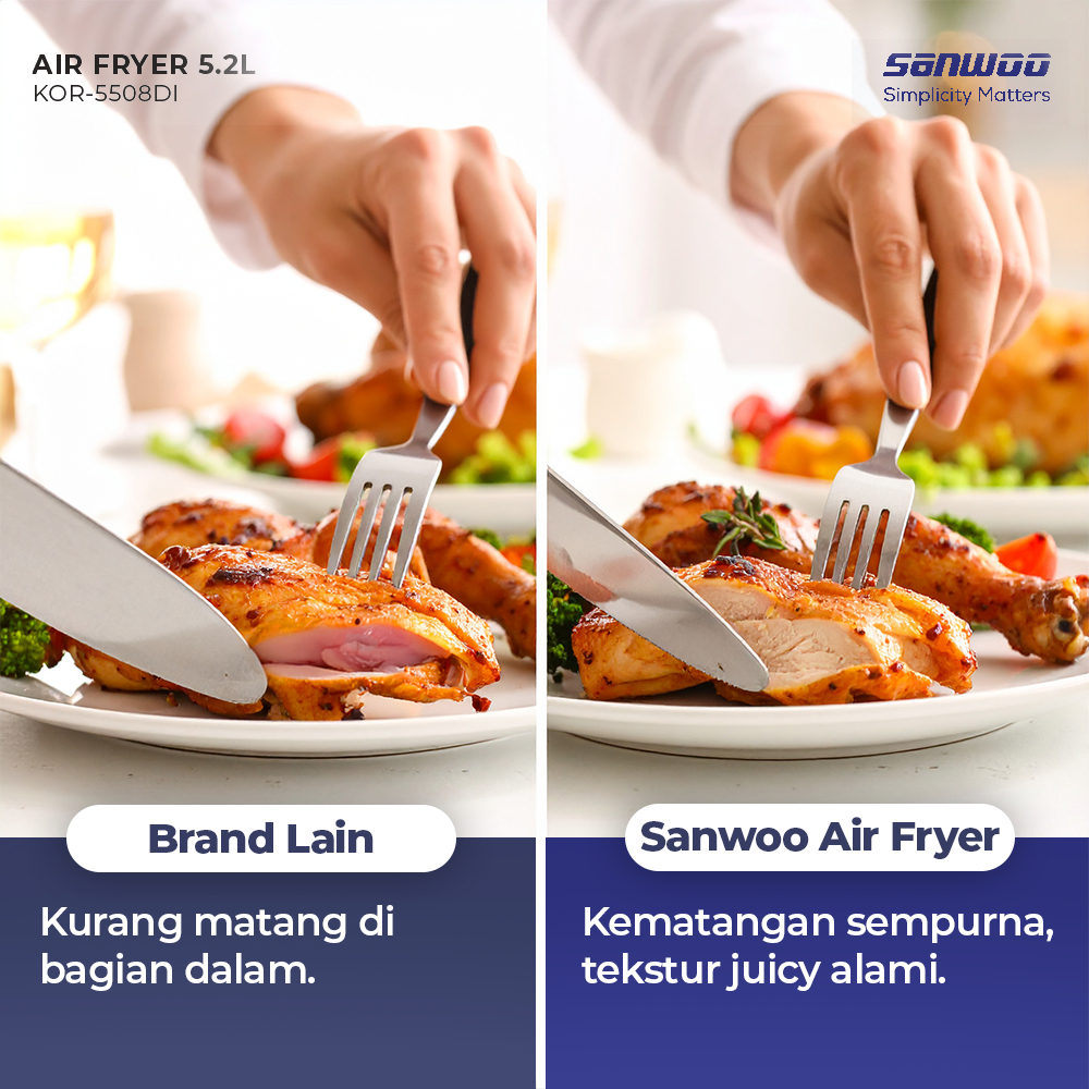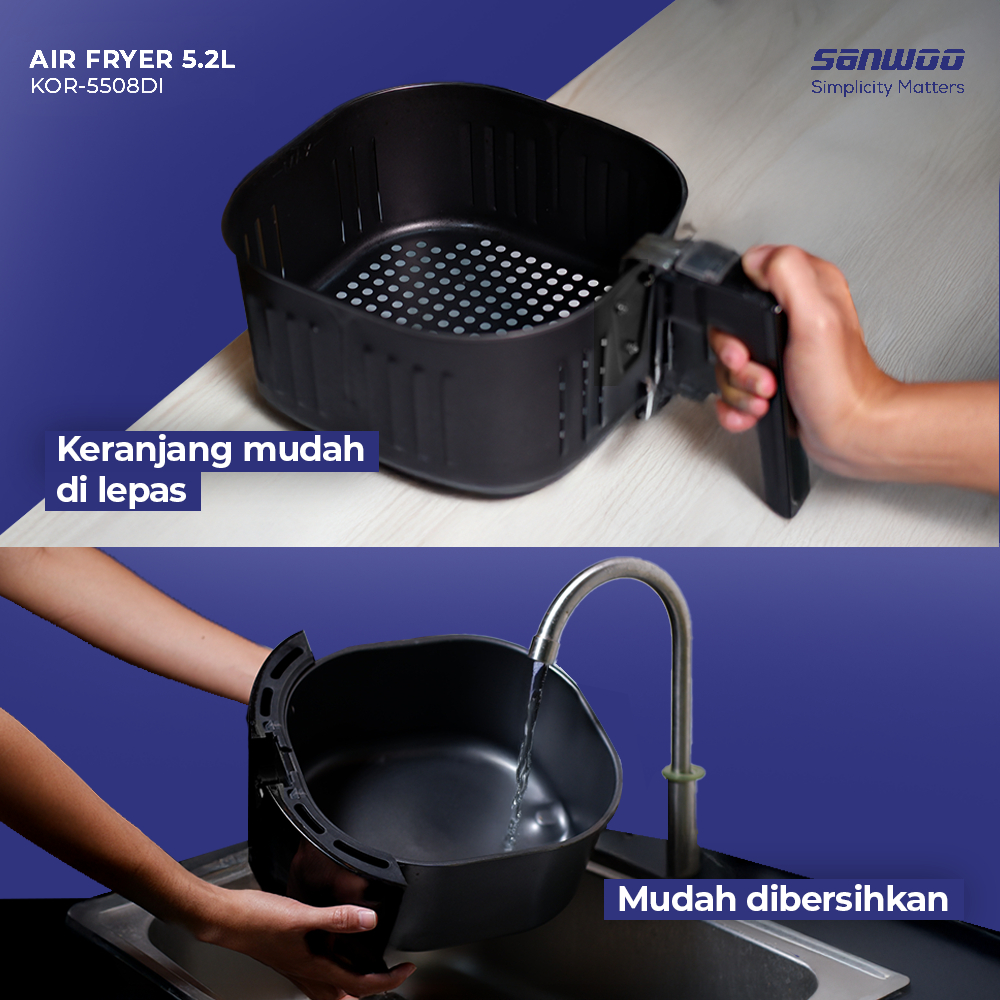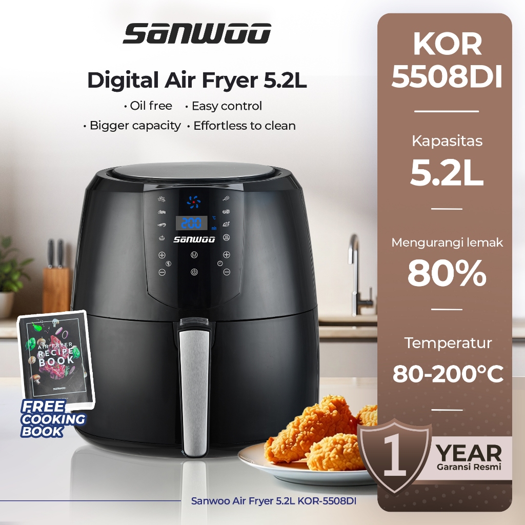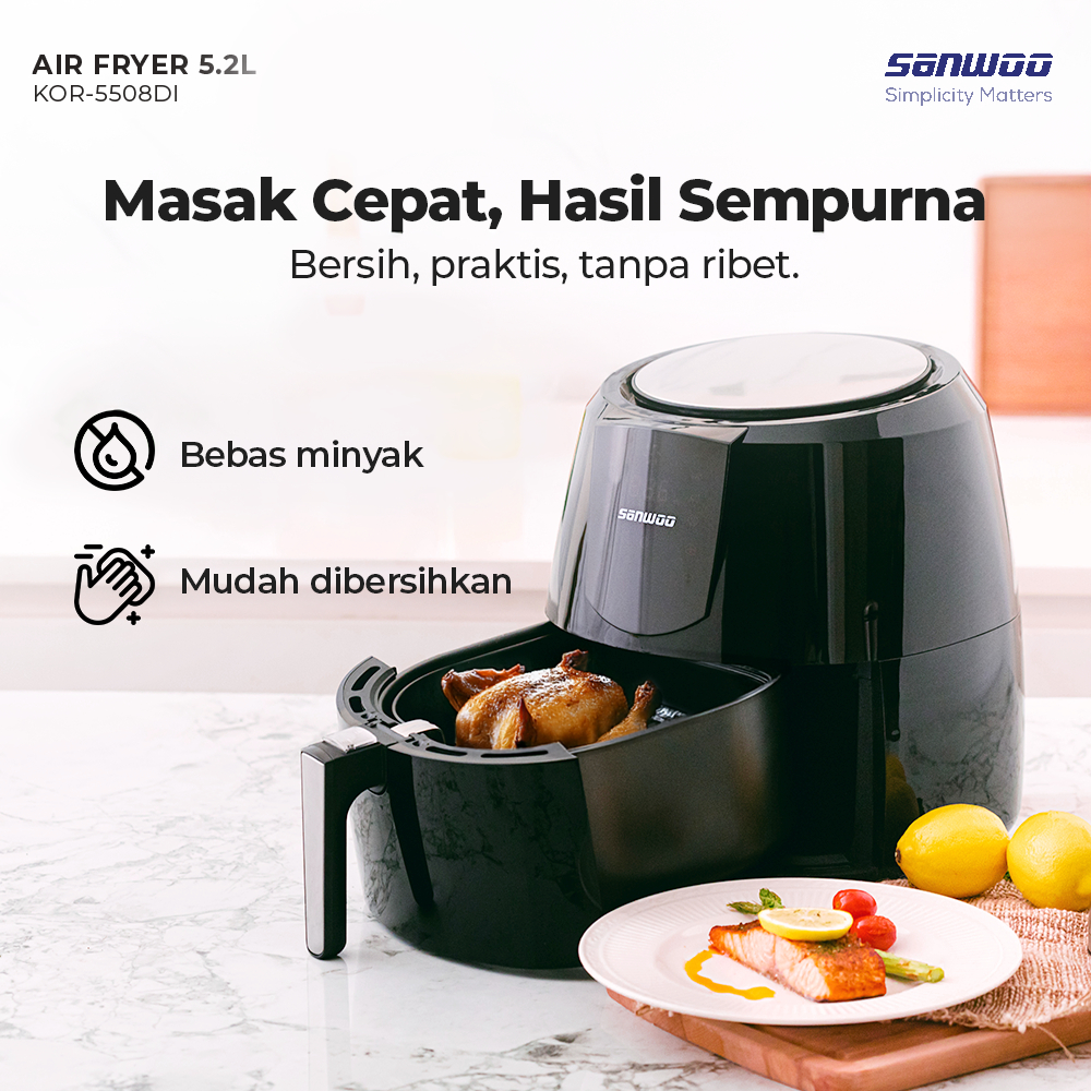 Sanwoo Air Fryer 5,2 Large size KOR-5508DI / Airfryer multifungsi digital layar sentuh Penggorengan tanpa minyak dan mengurangi lemak hingga 85%