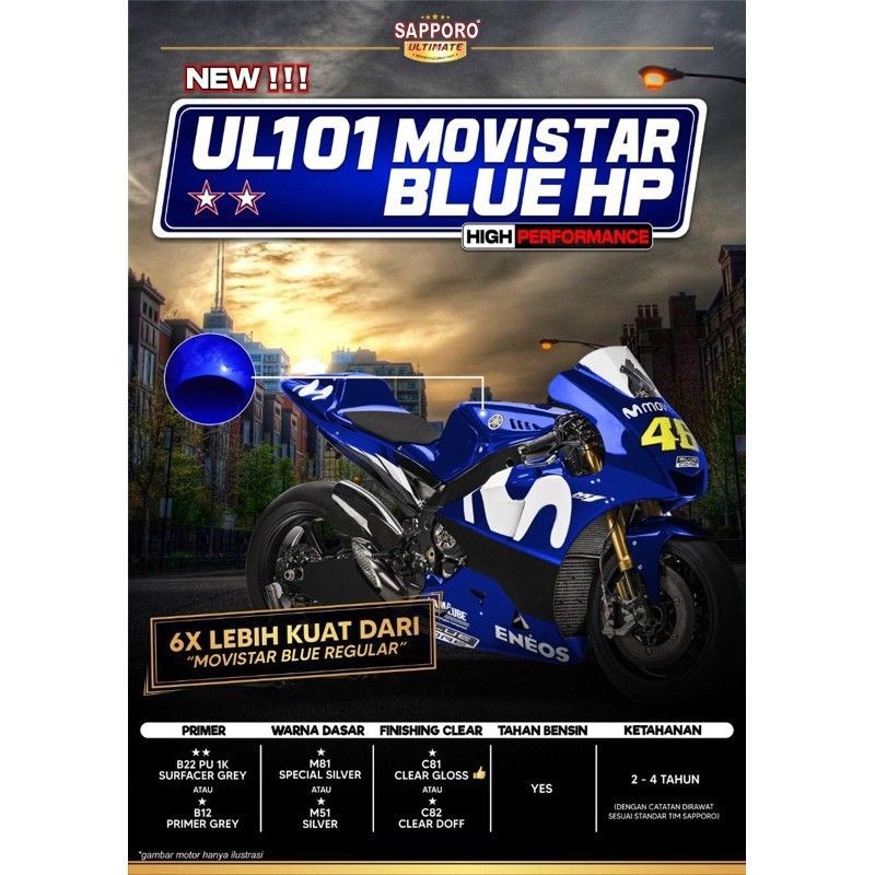 Sapporo Ultimate UL101 Movistar Blue HP/movistar/biru/cat semprot/pylox/pilox/pilok/motor