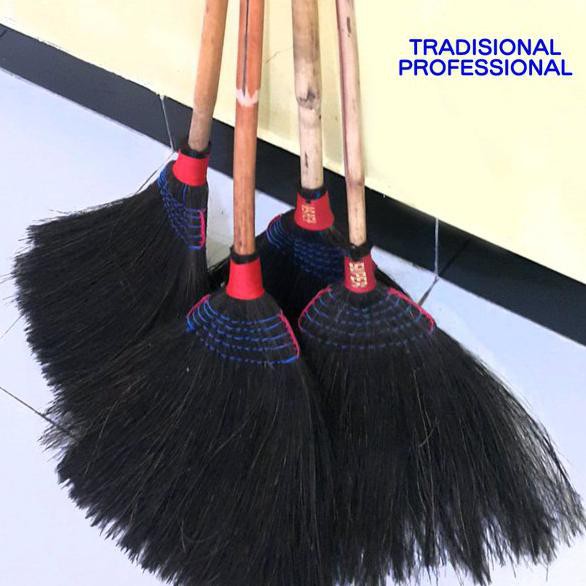 Sapu Ijuk Hitam Gagang ROTAN | Sapu Ijuk Tradisional Anyam Awet