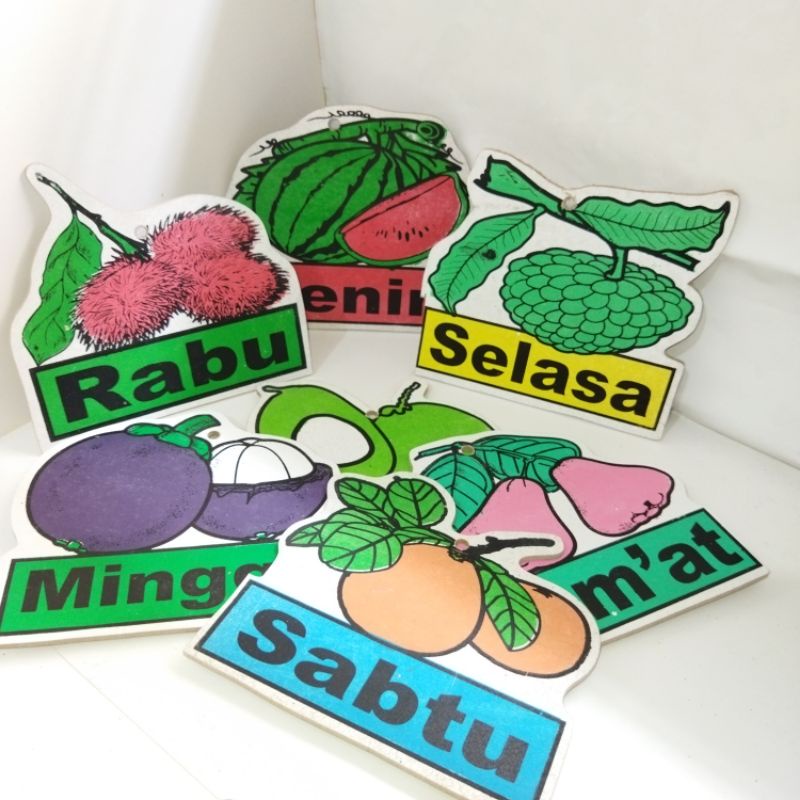 SaranaPeraga - Maket Buah Nama Hari / Mengenal Nama Nama Hari / Belajar Mengenal Hari / Buah Nama Nama Hari Kayu - Mainan Edukasi Anak