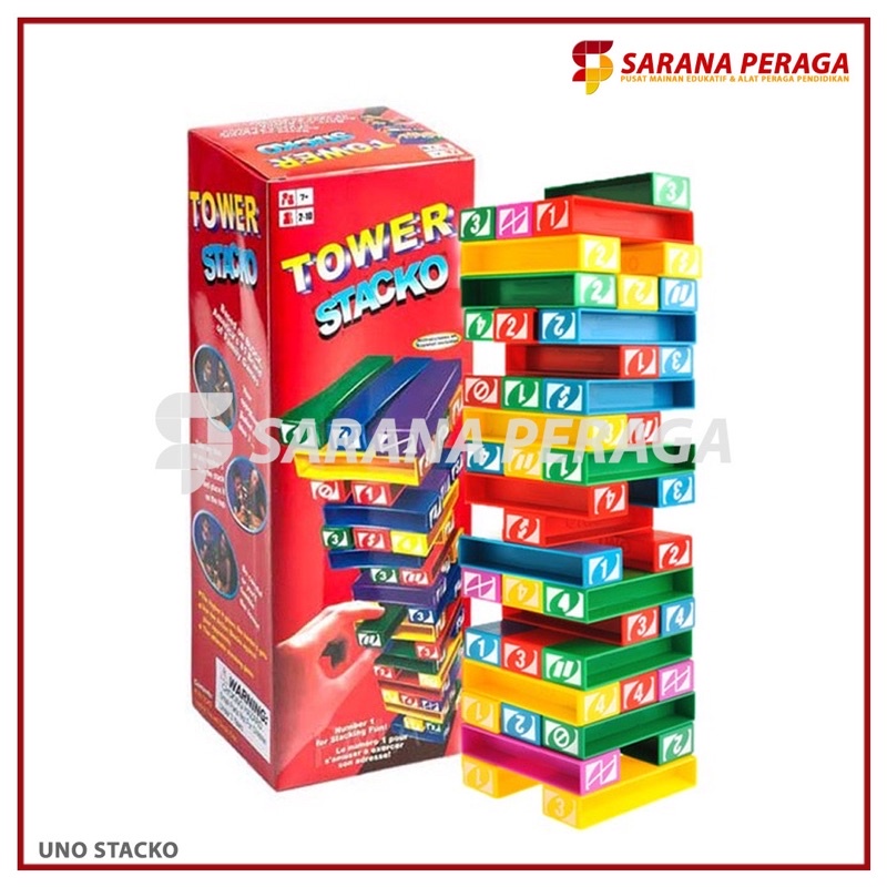 SaranaPeraga - Uno Stacko / Balok Susun Block Tower / Permainan Susun Warna Warni Menara Blok - Mainan Edukasi Anak