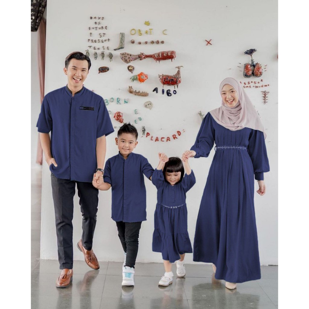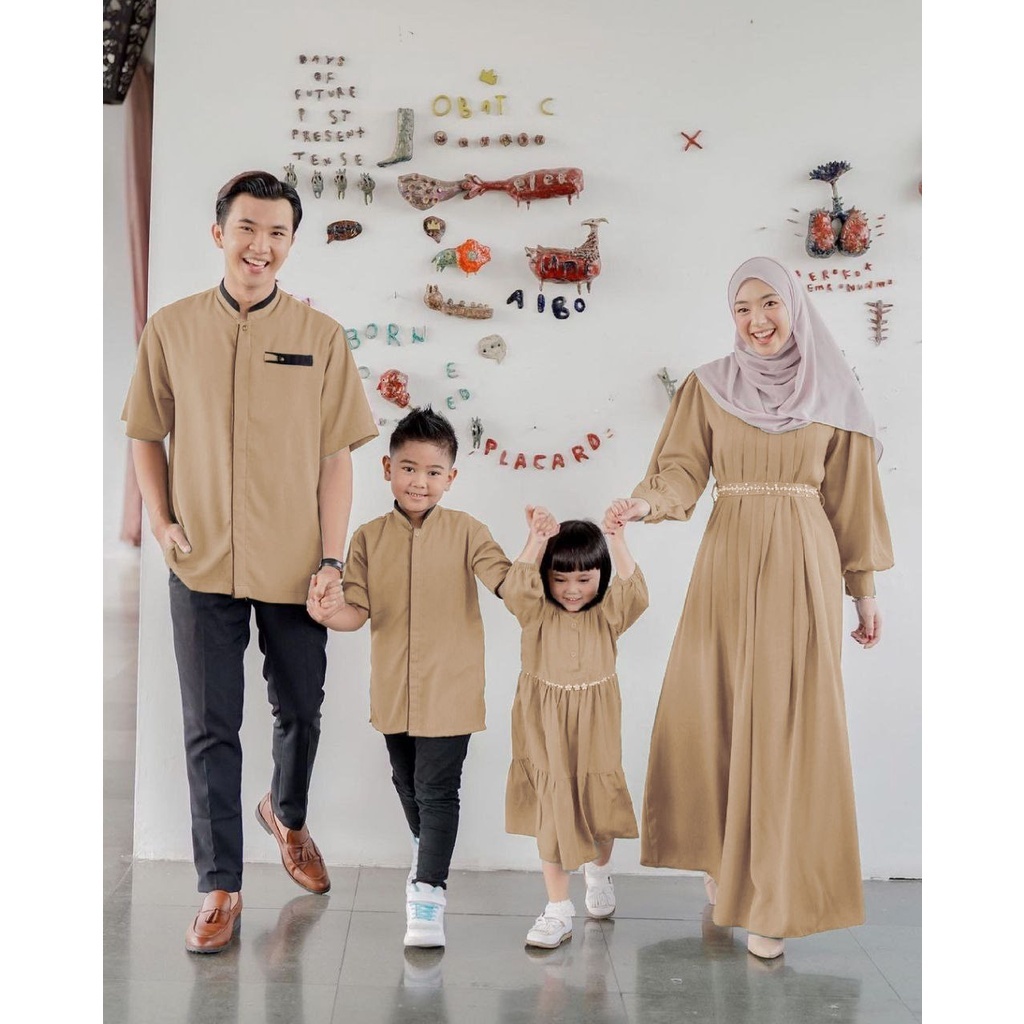 Sarimbit Keluarga 2024 Azizah Baju Couple Keluarga Lebaran 2023 - Baju Keluarga Sarimbit 2022 Gamis Koko Nibras Balance Vanila ZAVENA BATIK