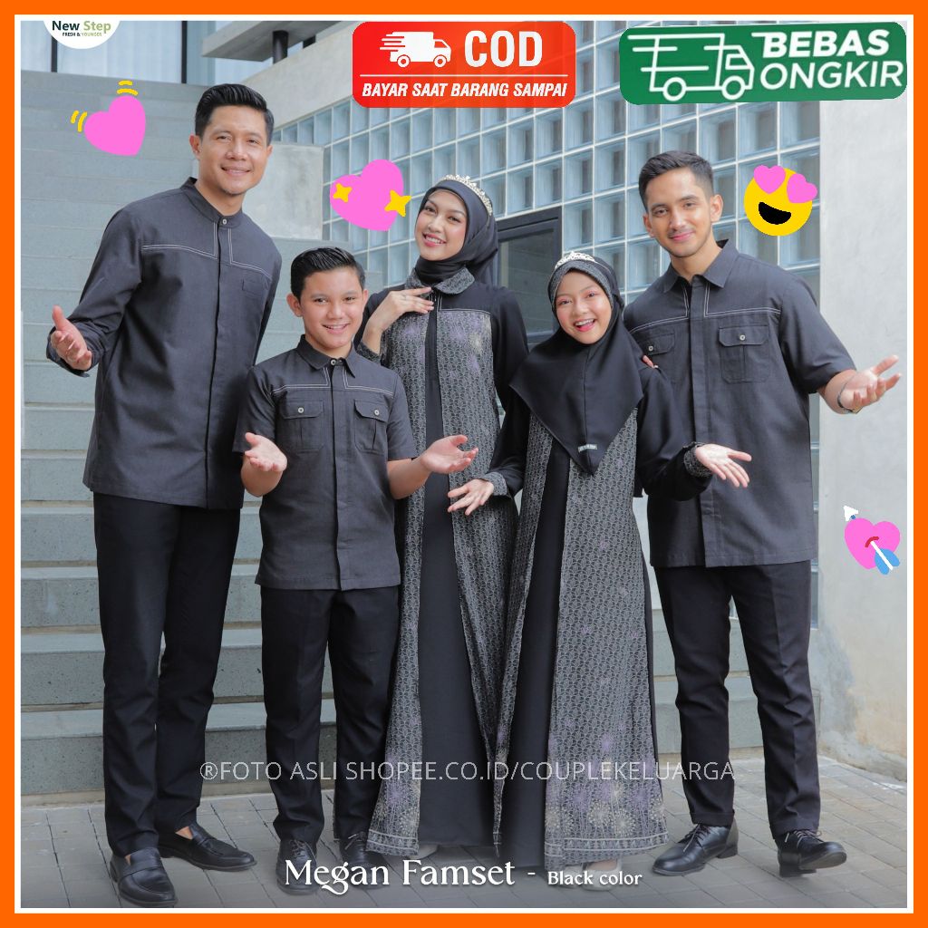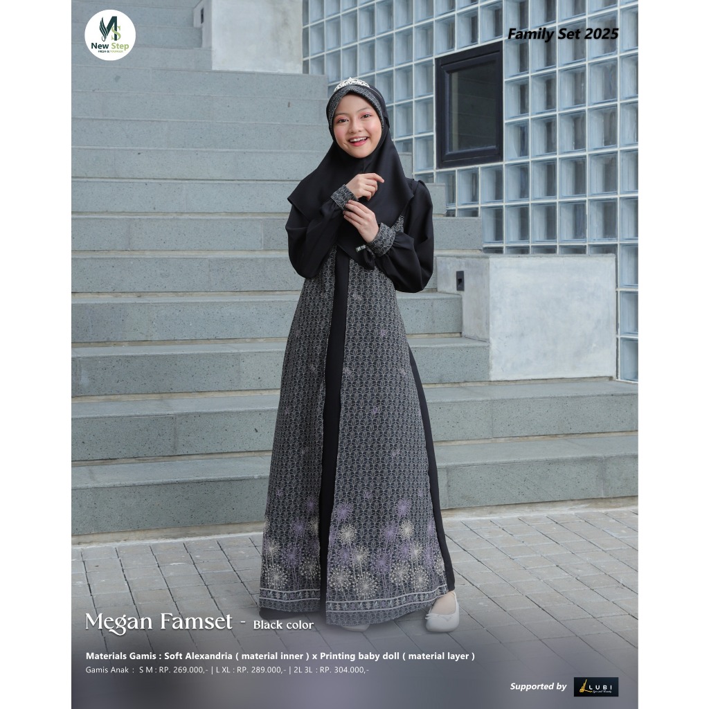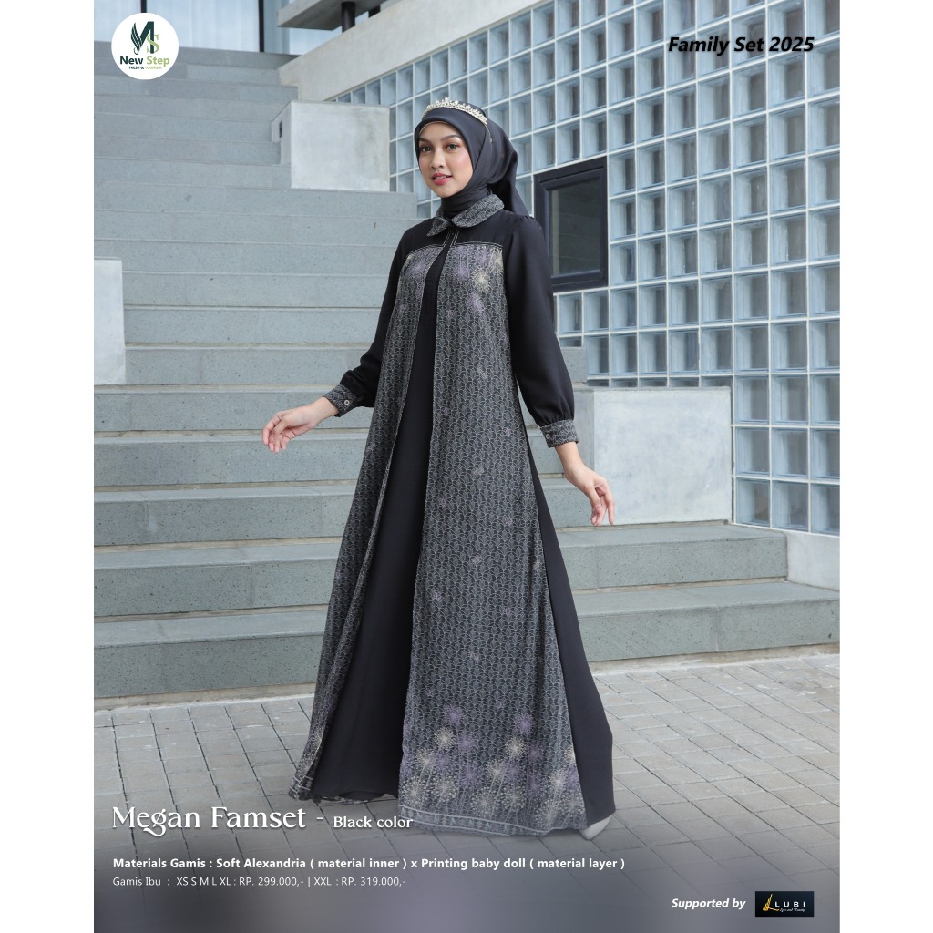 Sarimbit Keluarga 2025 Terbaru Sarimbit NEW STEP MEGAN FAMILY BLACK Sarimbit Brand Sister Lubi 2025 Gamis Couple Keluarga Sarimbit Ayah Ibu Anak Baju Couple Pasangan Sarimbit Lebaran 2025 MEGAN FAMSET Original New Step