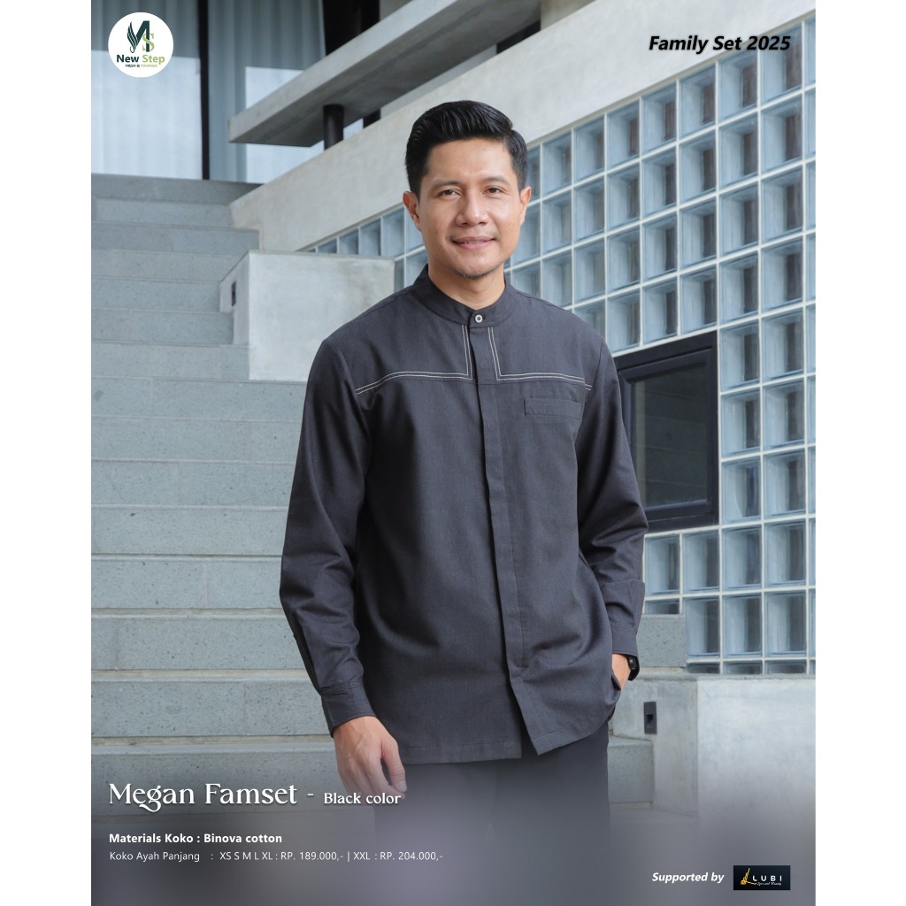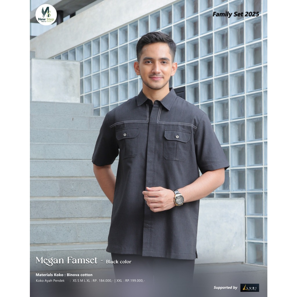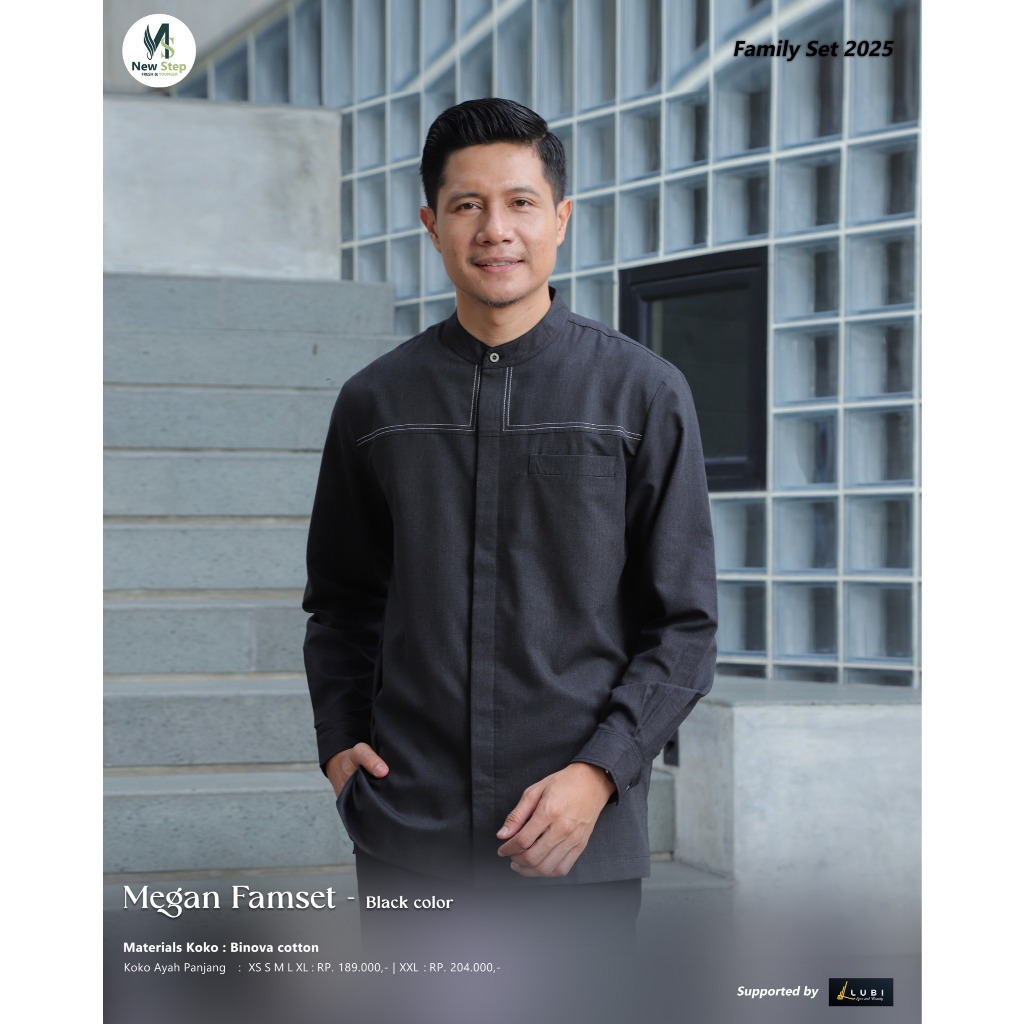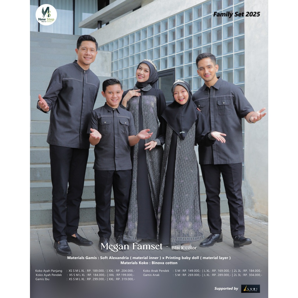 Sarimbit Keluarga 2025 Terbaru Sarimbit NEW STEP MEGAN FAMILY BLACK Sarimbit Brand Sister Lubi 2025 Gamis Couple Keluarga Sarimbit Ayah Ibu Anak Baju Couple Pasangan Sarimbit Lebaran 2025 MEGAN FAMSET Original New Step