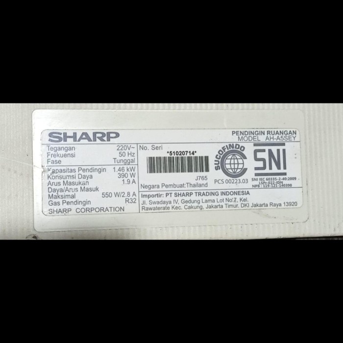 Saringan Filter Udara Indoor AC Sharp Thailand 1/2 PK AH-A5SEY 34.5 x 26.7 cm Cabutan Bekas Original