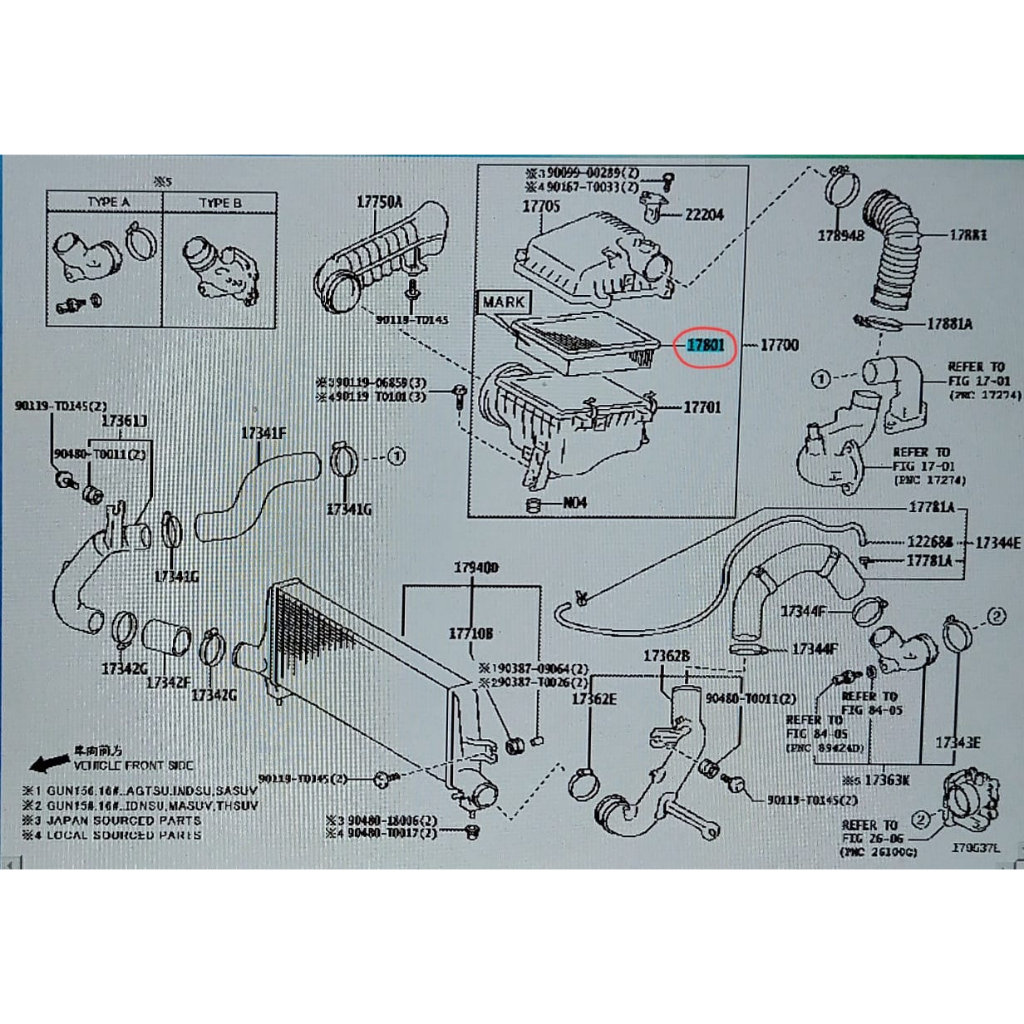 Saringan udara Toyota Innova (2016-2020), Fortuner (2016-2022), Hilux (2015-2022). Original 17801-0L050.