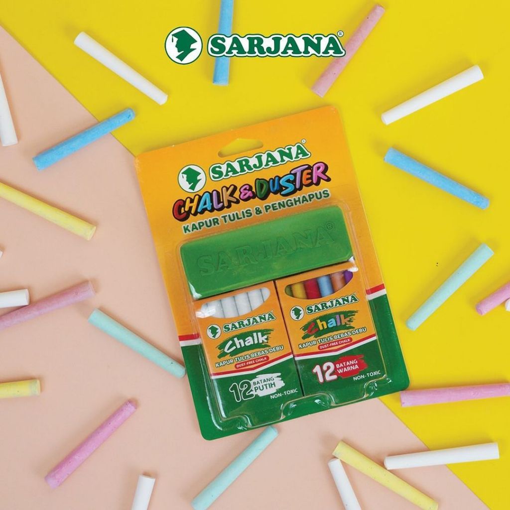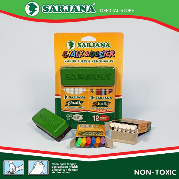 Sarjana Set Kapur Tulis Anti Debu Warna Putih, Warna, dan Penghapus