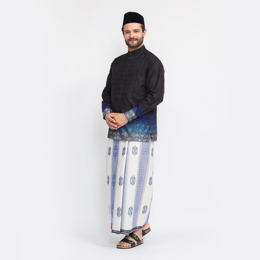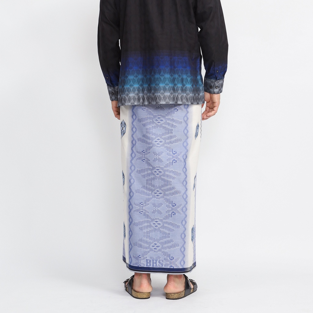 Sarung BHS Excellent Gold Motif Jacquard Songket Putih Biru