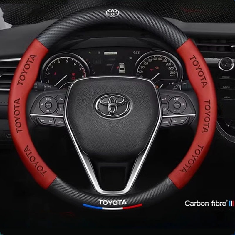Cover Stir Sarung Stir Bungkus Stir Sarung Stir Mobil Toyota Ayla/Sarung Stir Mobil/Fiber Karbon Cover Setir Steer/Cover Stir Mobil Bahan Kulit 38CM/3D LOGO Embossed Kulit Sarung Setir Mobil/Sarung Stir Mobil Bahan Kulit Premium Cover【kiokio】