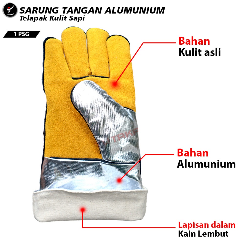 Sarung Tangan Alumunium Telapak Kulit Tahan Panas 500 derajat Heat Resistant