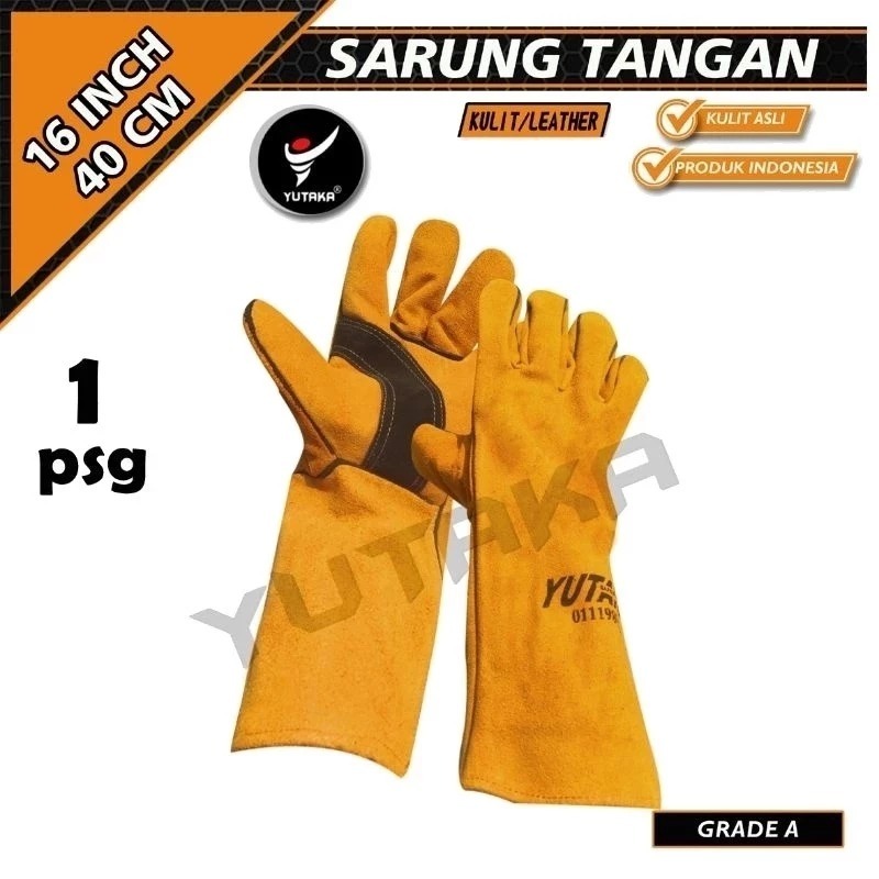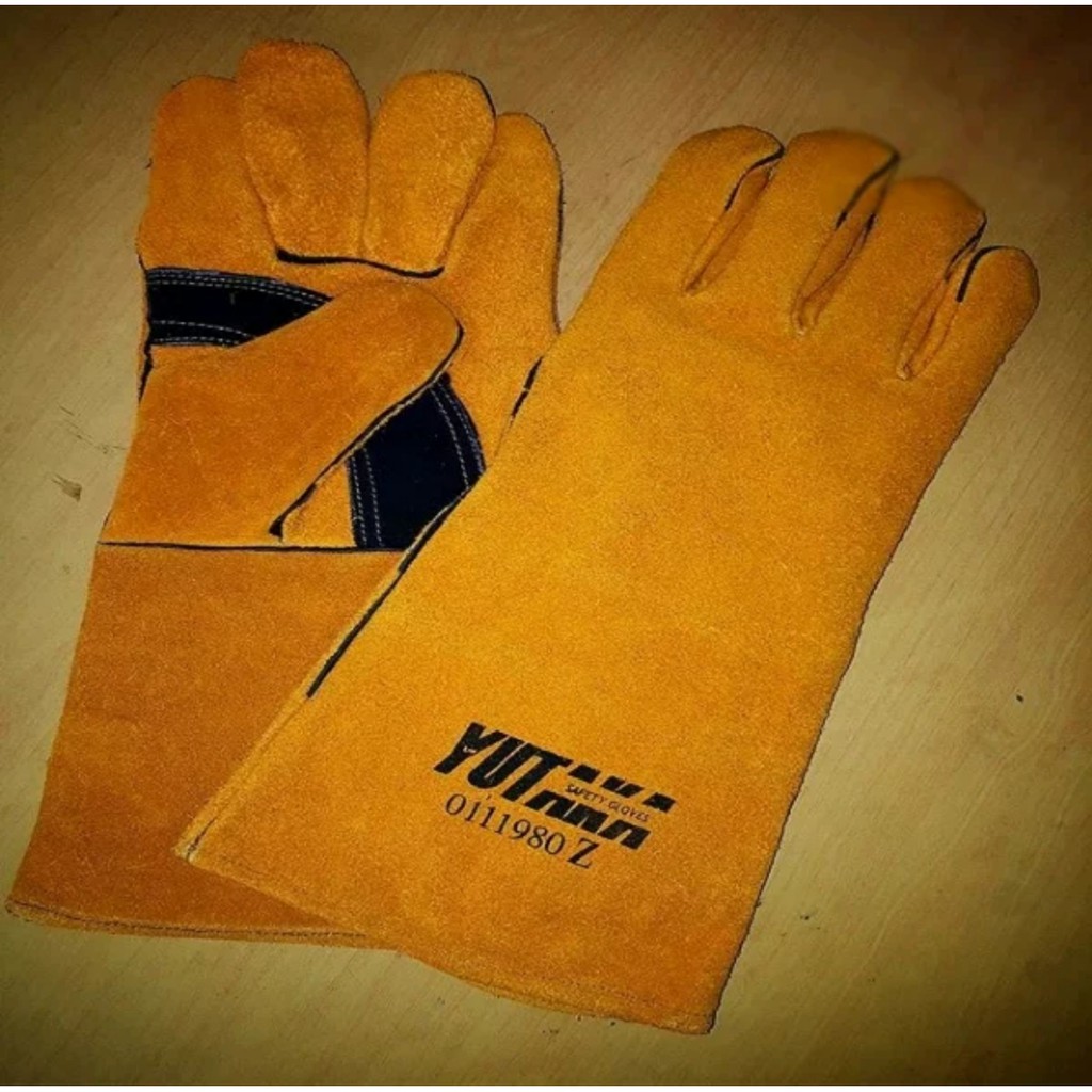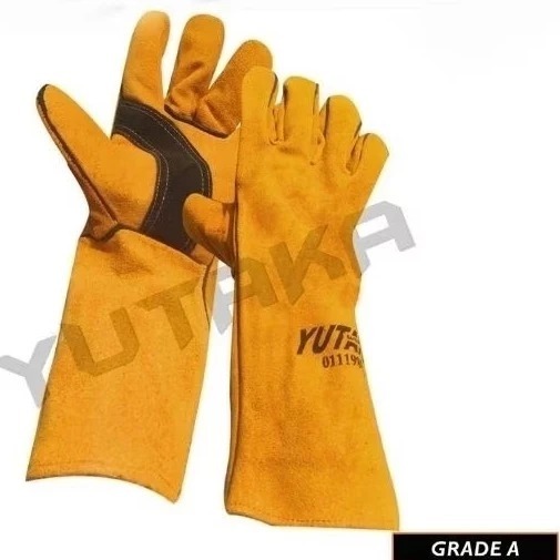 Sarung Tangan Kulit Tebal Las YUTAKA 14 INCH Original Murah Grosir/sarung tangan las yutaka 14 inch tan