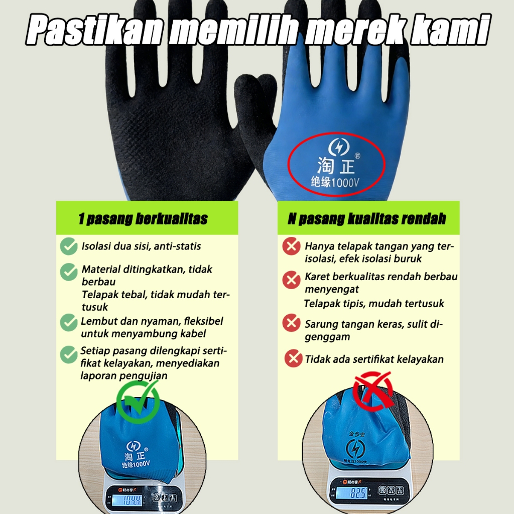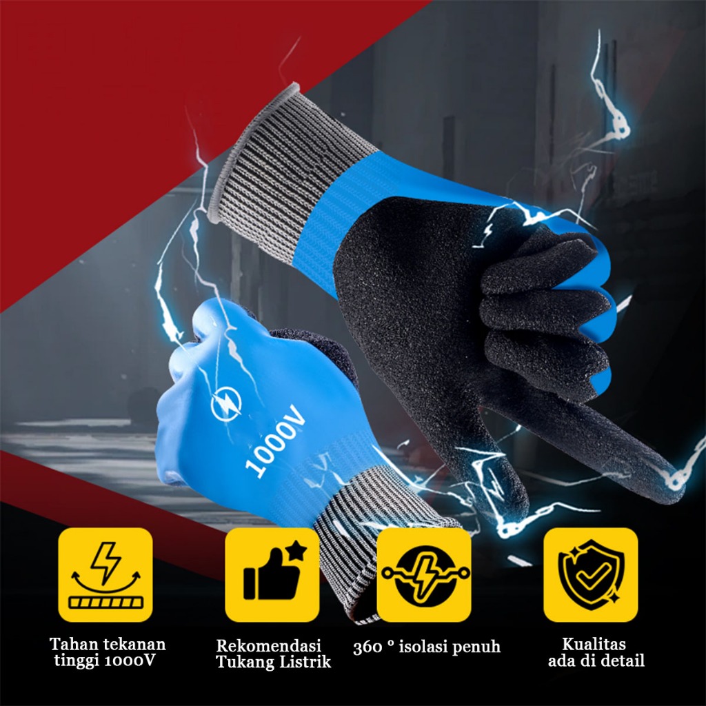 Sarung tangan berinsulasi baru 1000V, sarung tangan karet berinsulasi tegangan tinggi, sarung tangan berinsulasi upgrade, anti tusuk dan anti getaran