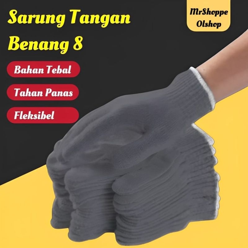 Sarung tangan polos abu-Abu benang 8 sarung tangan (24 lusin)