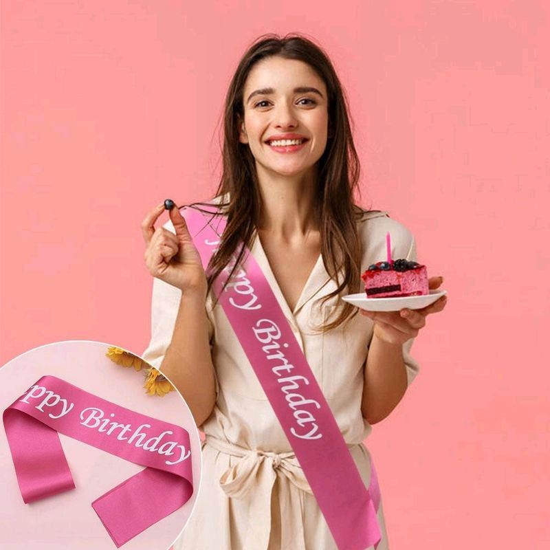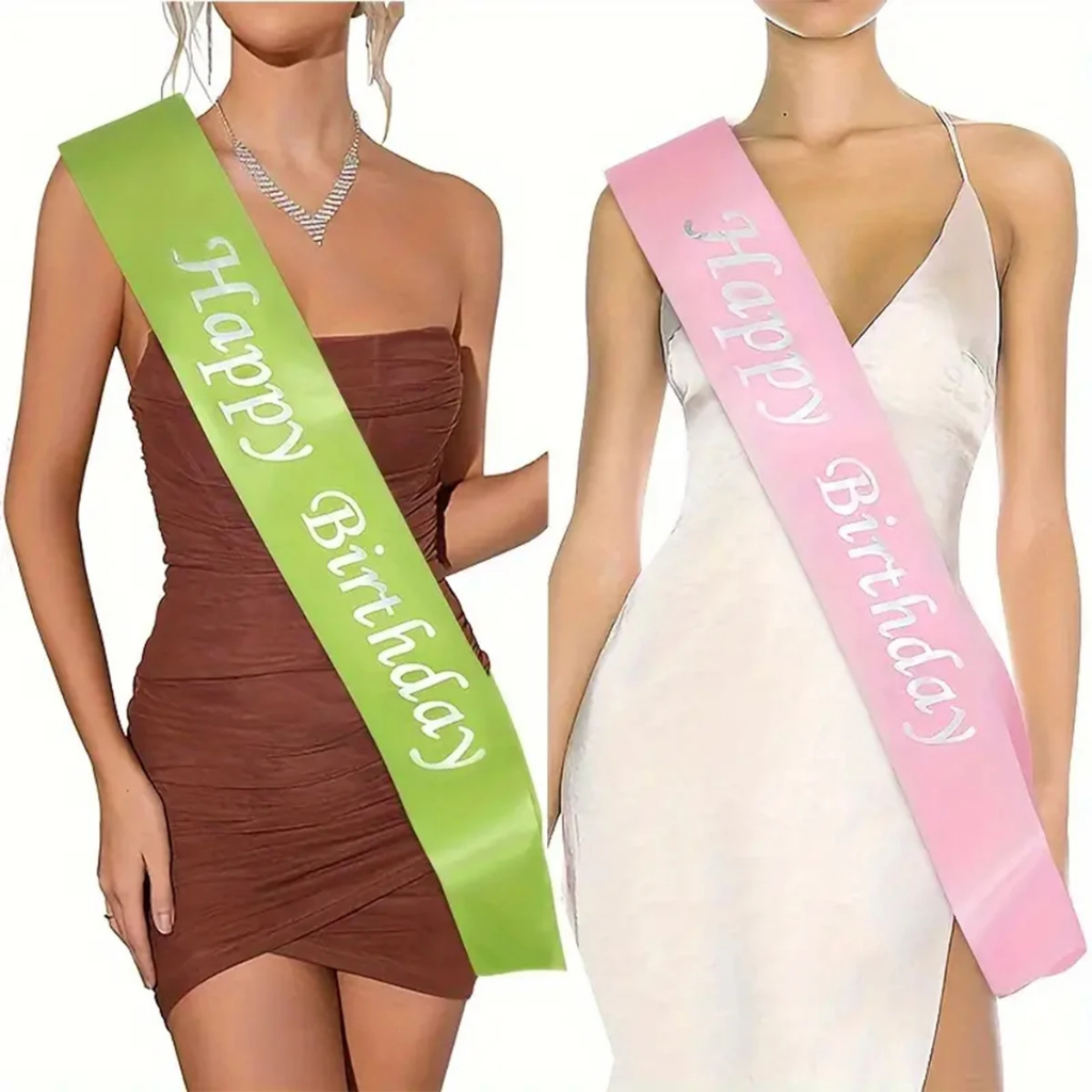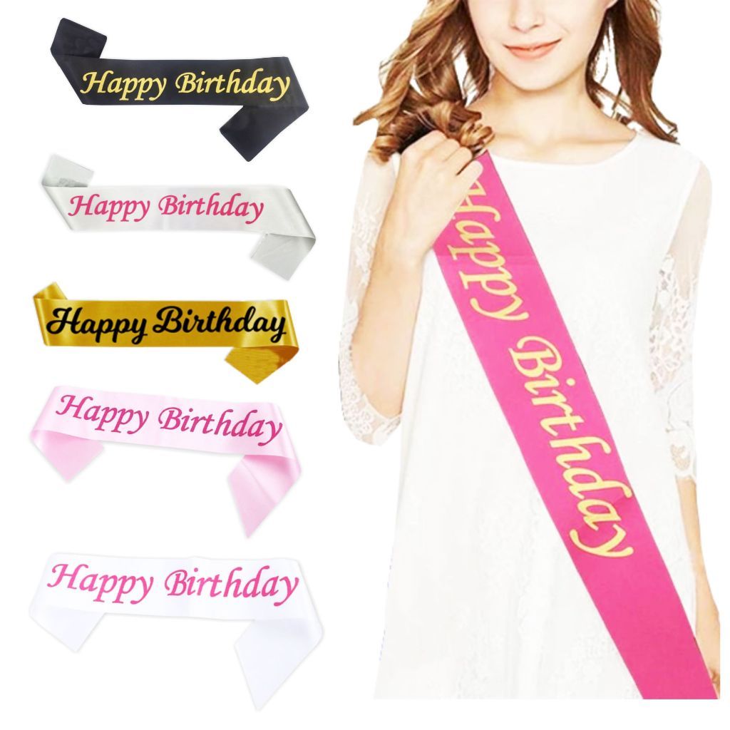 Sash Selempang Happy Birthday Ulang Tahun Bahan Satin Slempang Hiasan Perlengkapan Pesta Ultah Sash Selempang Graduation Putih Pink Gold Hitam