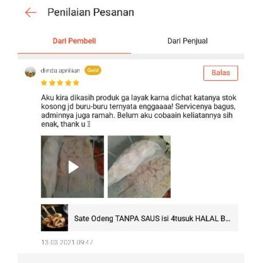 Sate Odeng TANPA SAUS isi 4tusuk HALAL BPOM!!