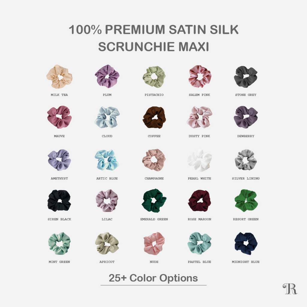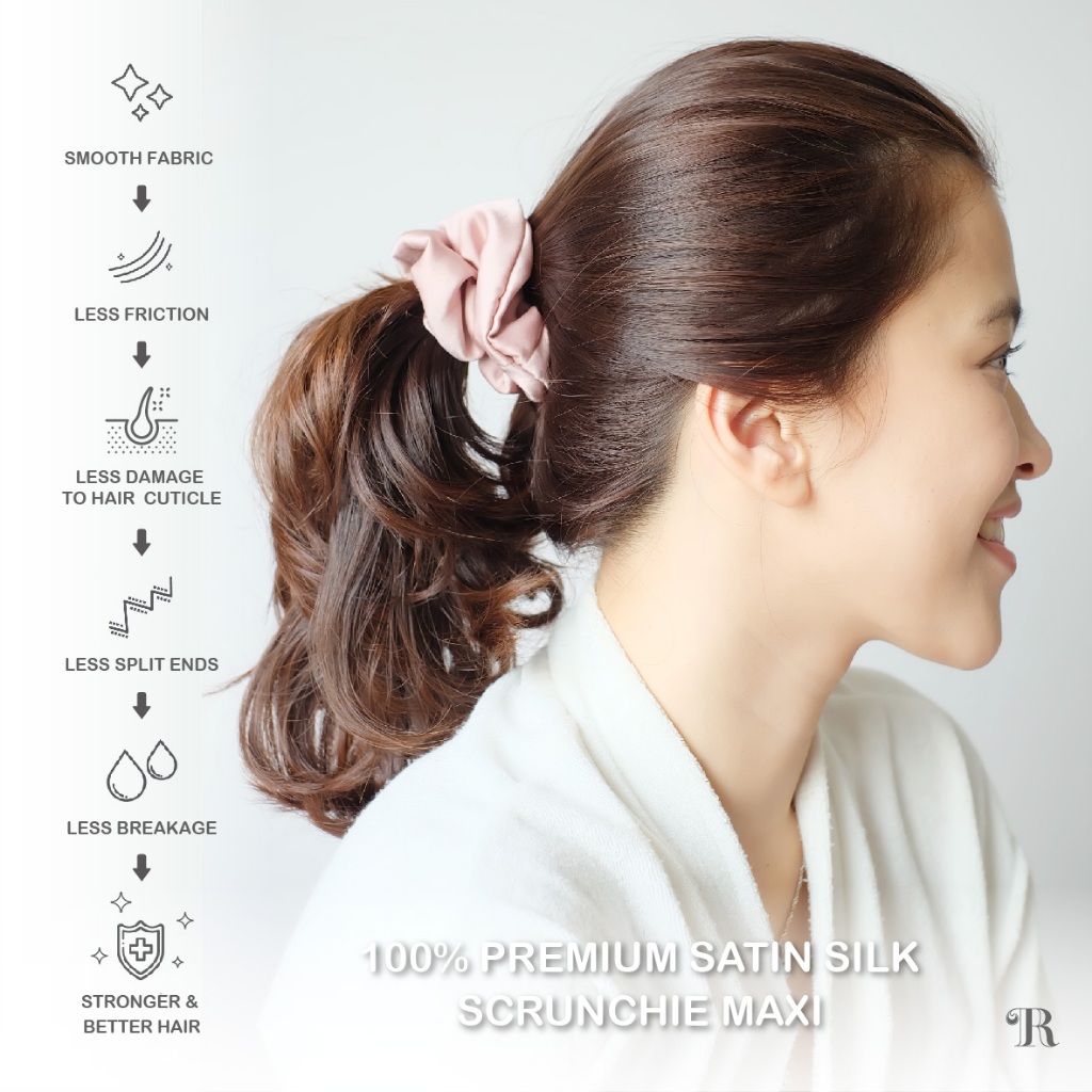 Scrunchies MAXI Premium Satin Silk The Rituale | Ikat Rambut Kuncir Hijab Cepol | Anti Rontok Pusing