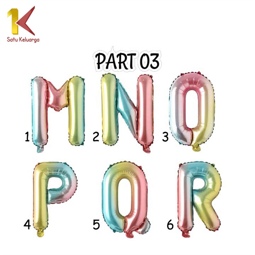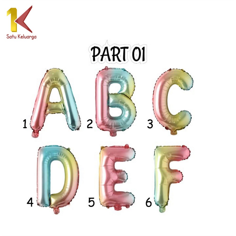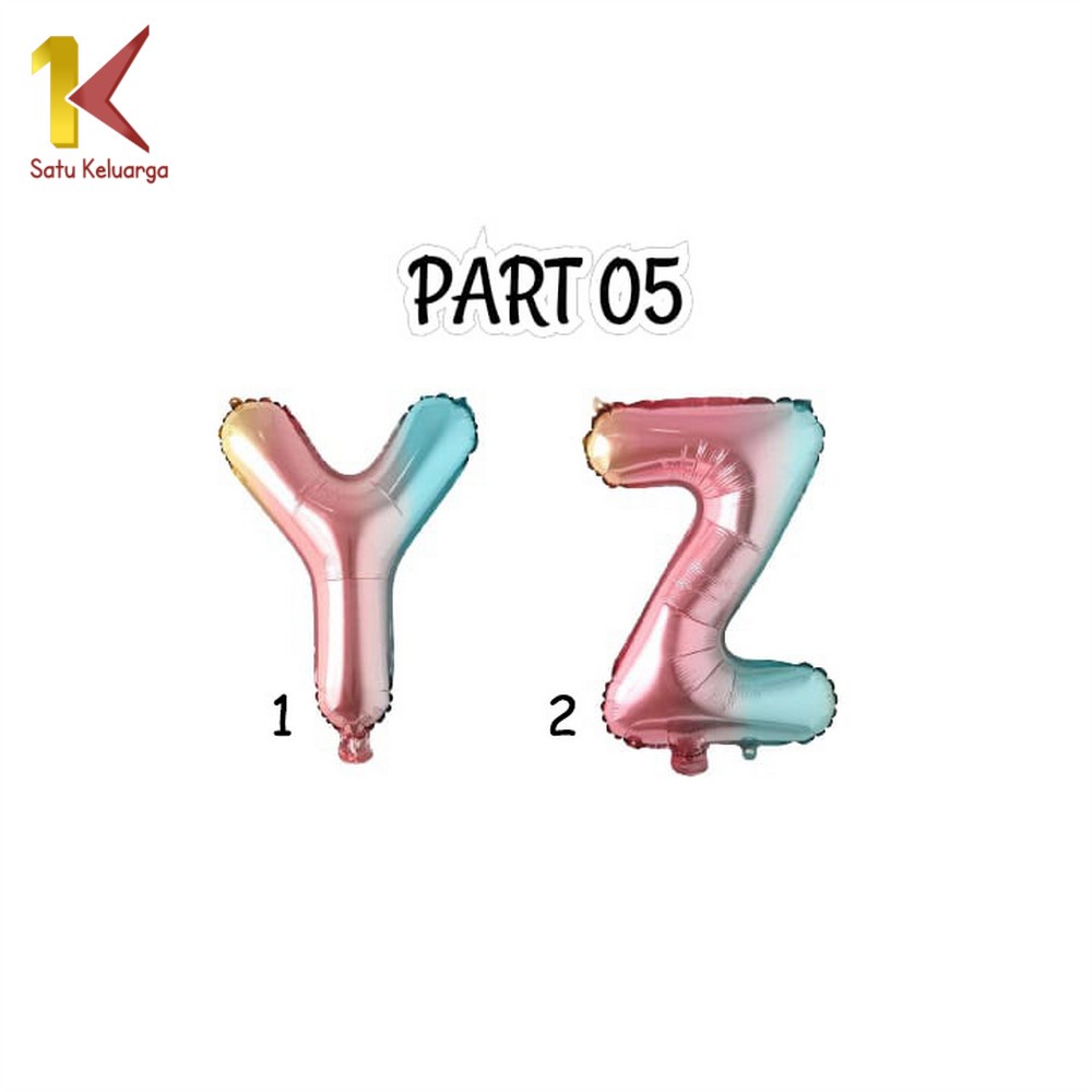 Satu Keluarga Ballon Foil Gradient C390 Baloon Huruf Dan Angka Polos A-Z Balon Foil Angka 0-9 / Perlengkapan Ulang Tahun Balon Foil Abjad dan Alphabet Set