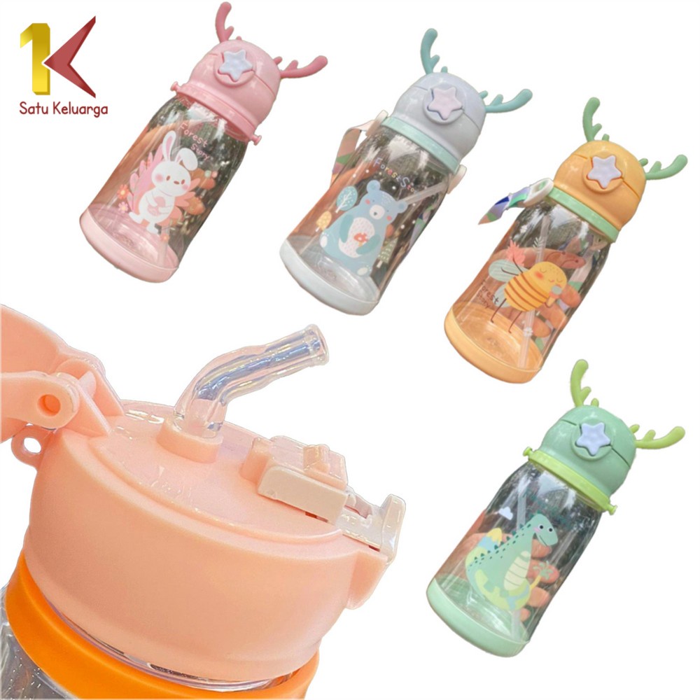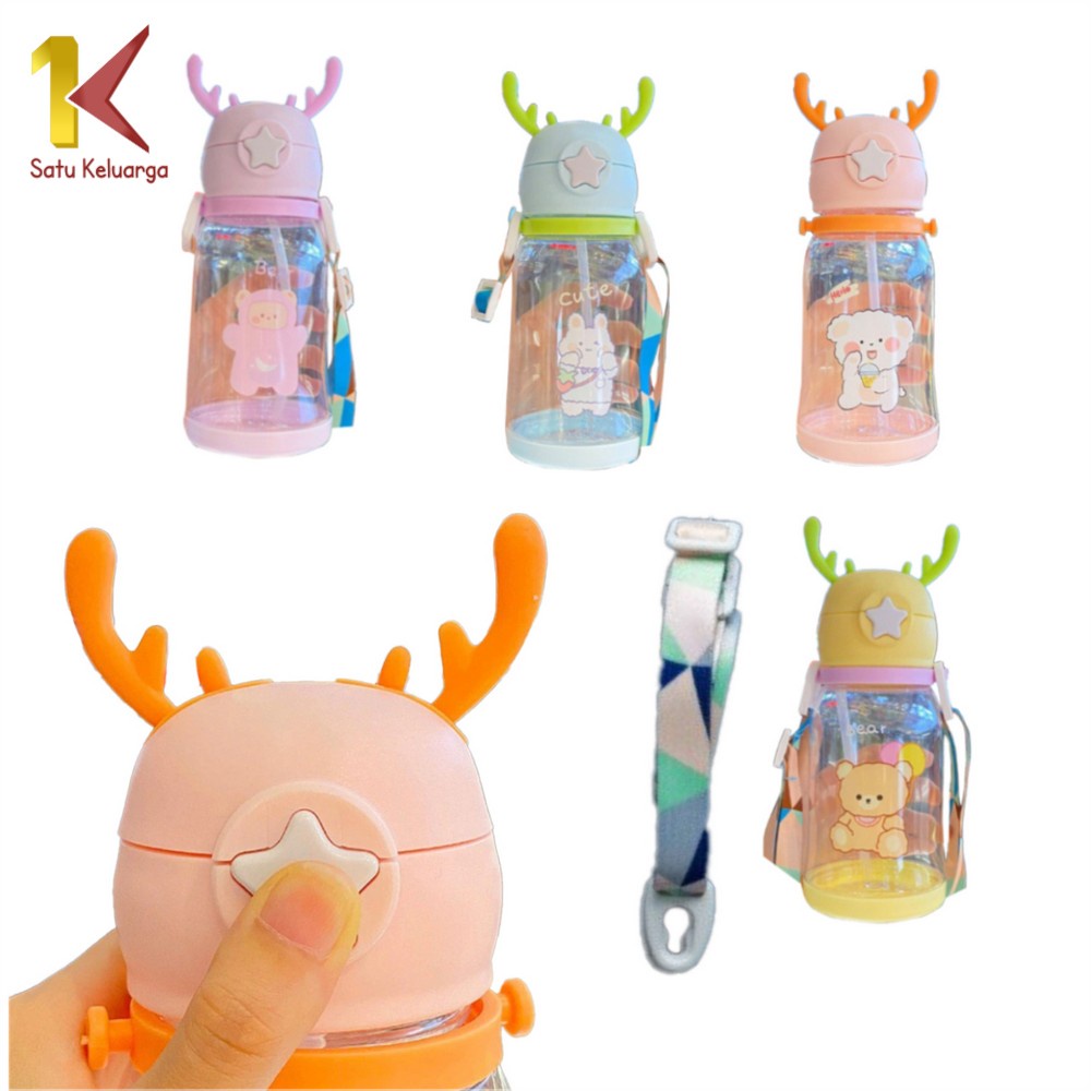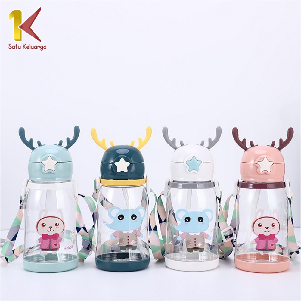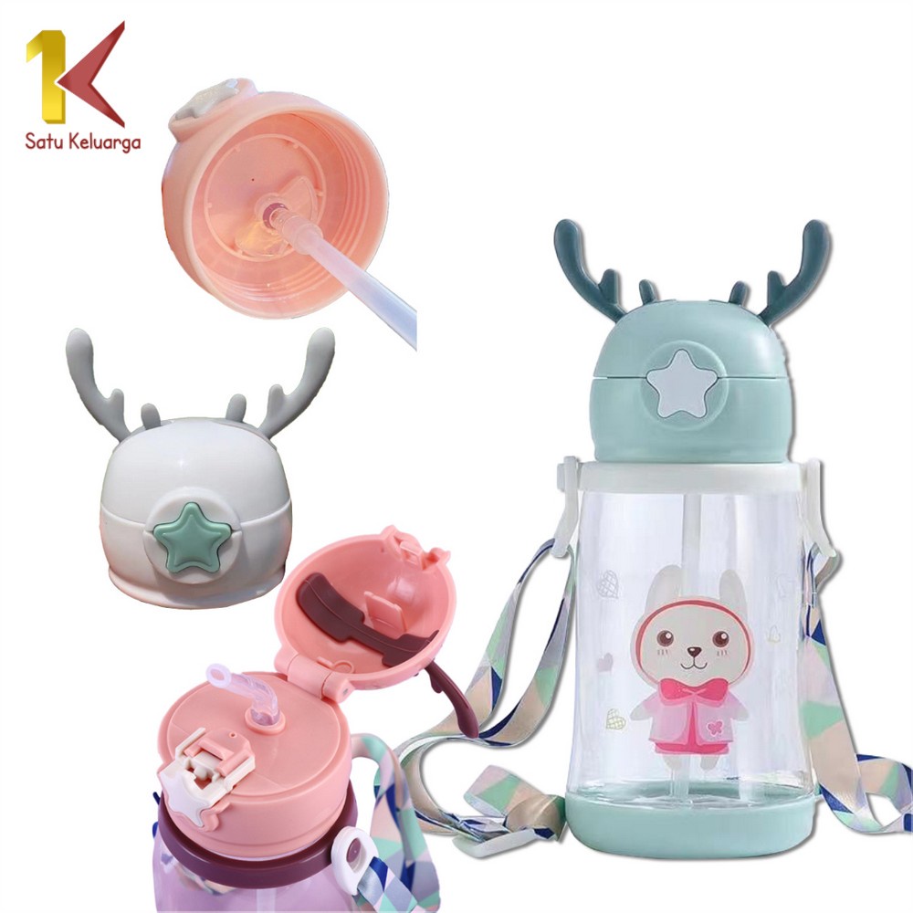 Satu Keluarga Botol Minum Anak BPA FREE Food Grade C302 Botol Air Minum Anak Sedotan 610ml Model Tanduk Rusa Lucu