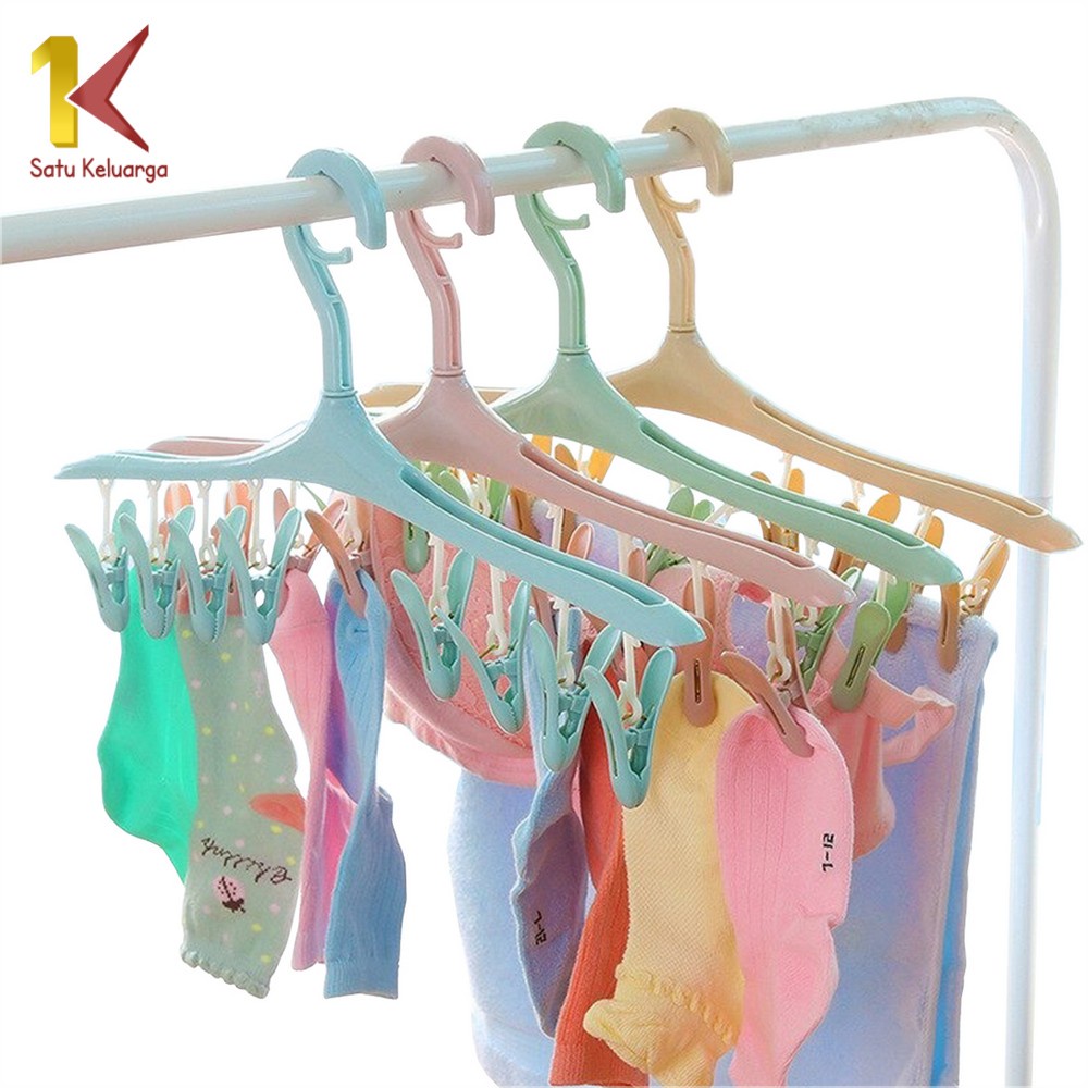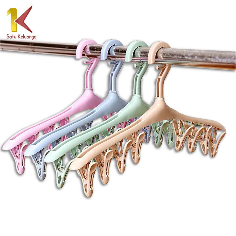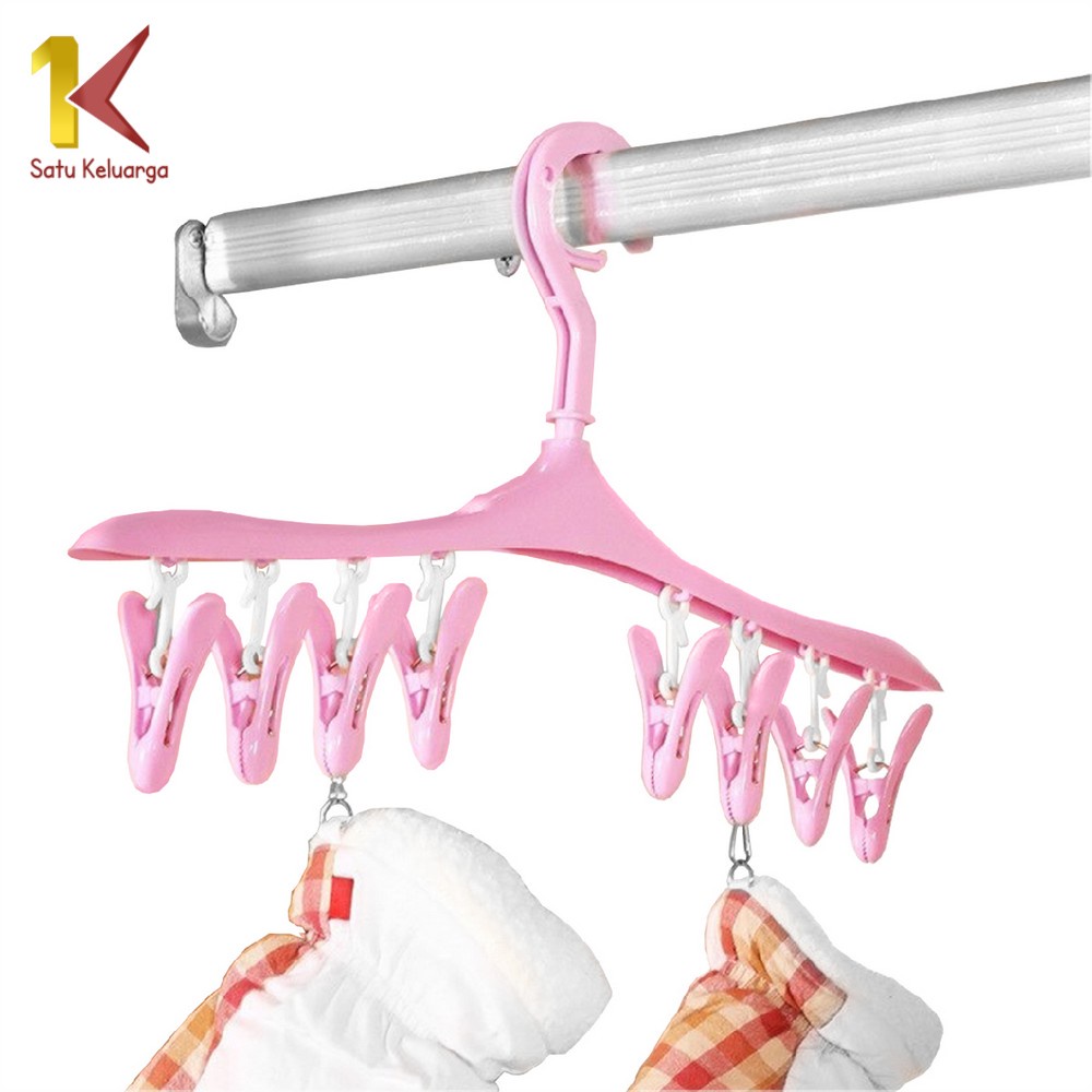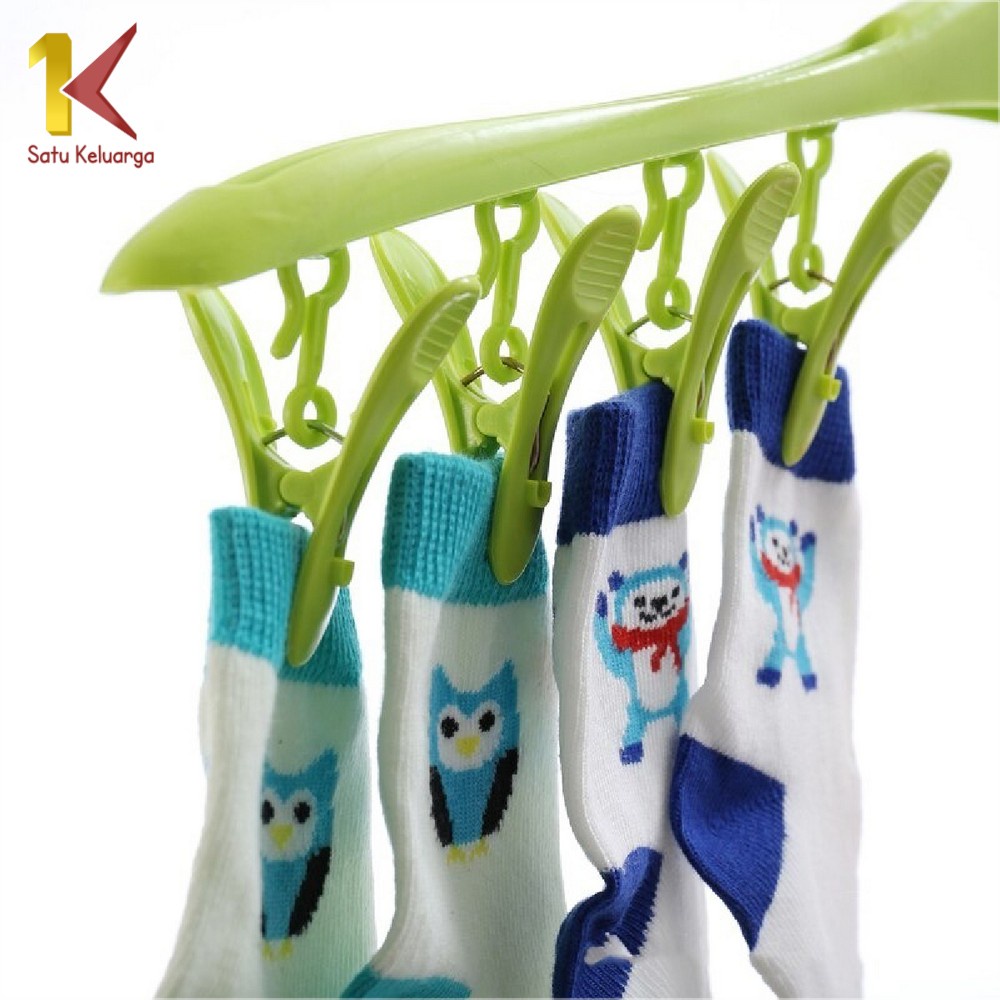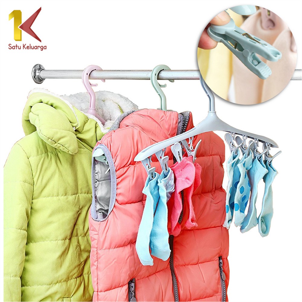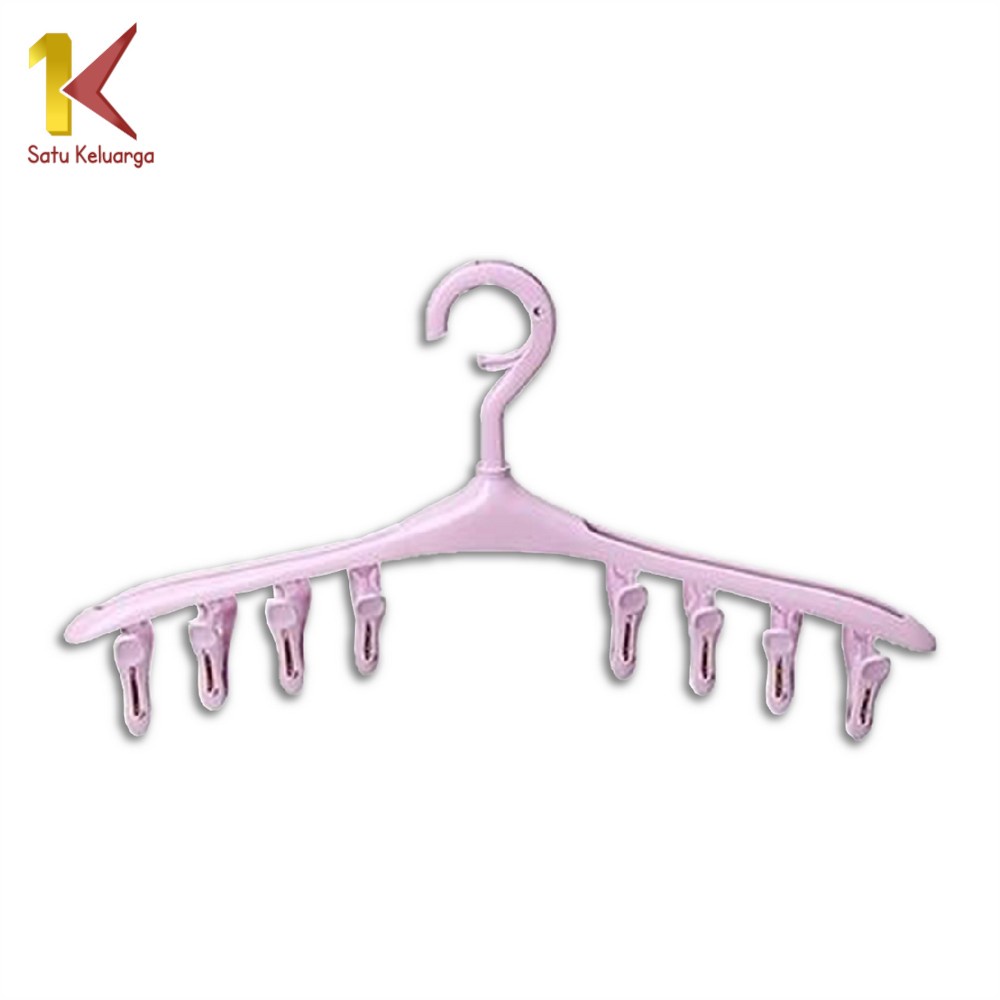Satu Keluarga Hanger Baju Jepitan 8IN1 C281 Gantungan Jemuran Baju Plastik Tebal / Hanger Kaos Kaki