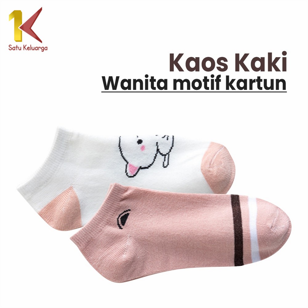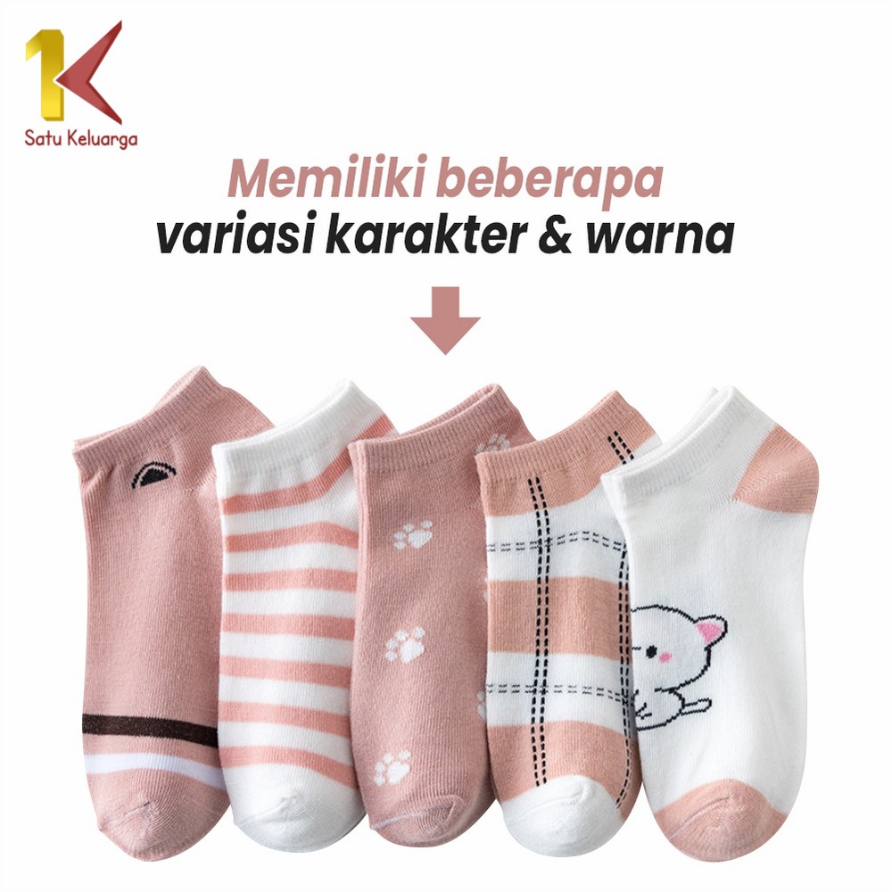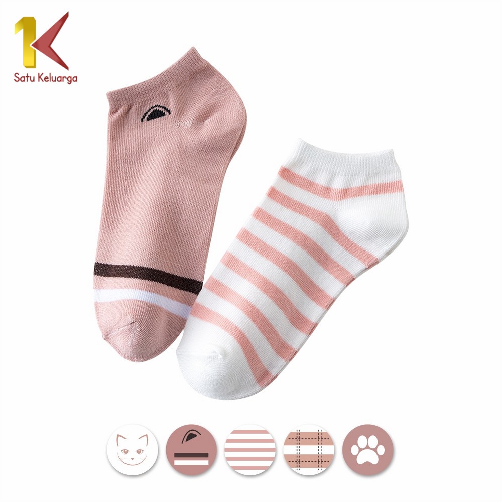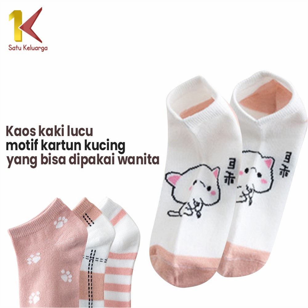 Satu Keluarga Kaos Kaki Wanita Motif Kartun Kucing Lucu P250 Ankle Socks Pink Cat Fashion Kaus Kaki Pendek Wanita Korean Style
