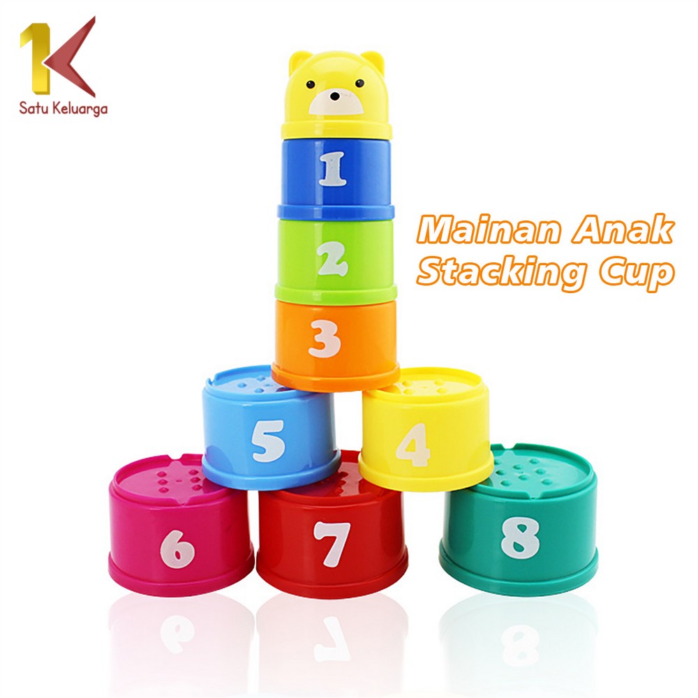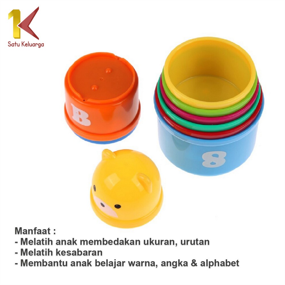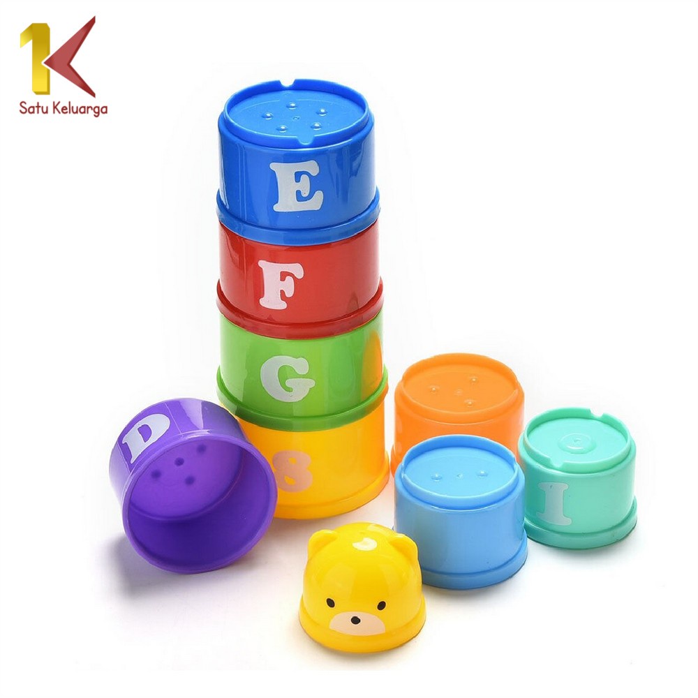 Satu Keluarga Mainan Anak Stacking Cup M21 Mainan Susun Gelas 9PCS Mainan Edukasi Bayi Angka Dan Alfabet