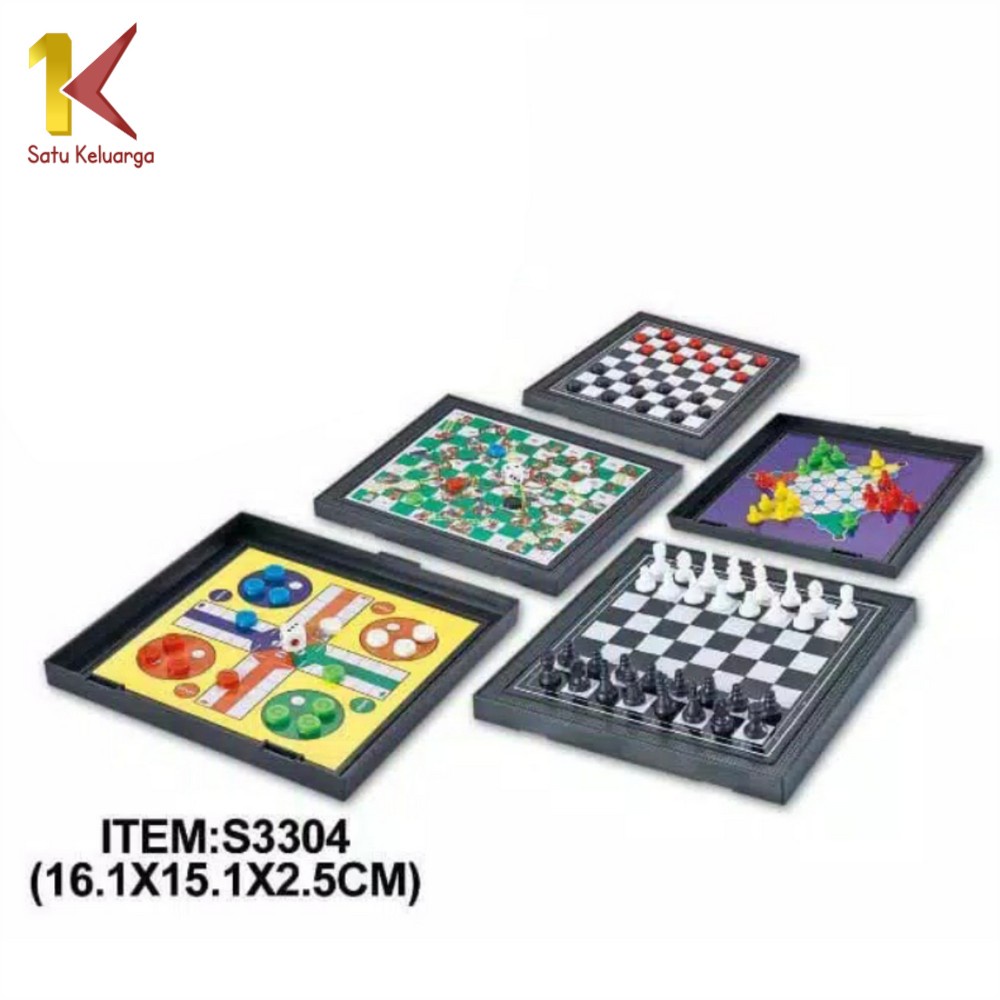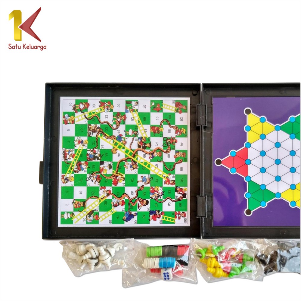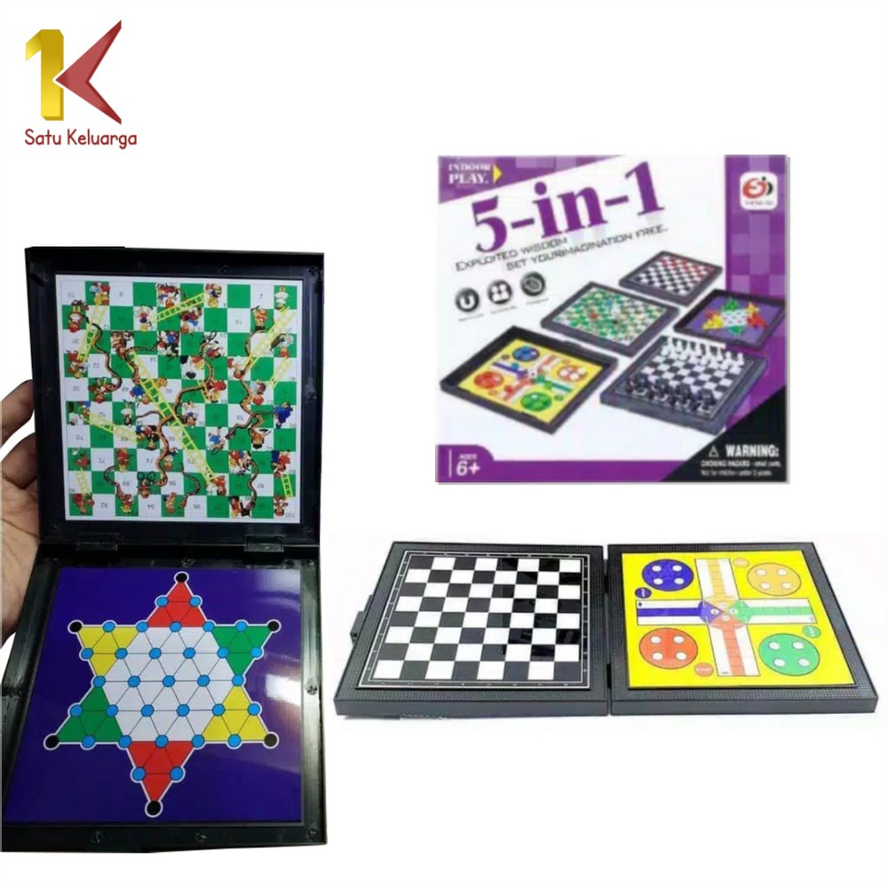 Satu Keluarga Permainan Papan Catur Magnet M59 Magnetic Board Games 5in1 Game Ludo Mainan Anak Ular Tangga