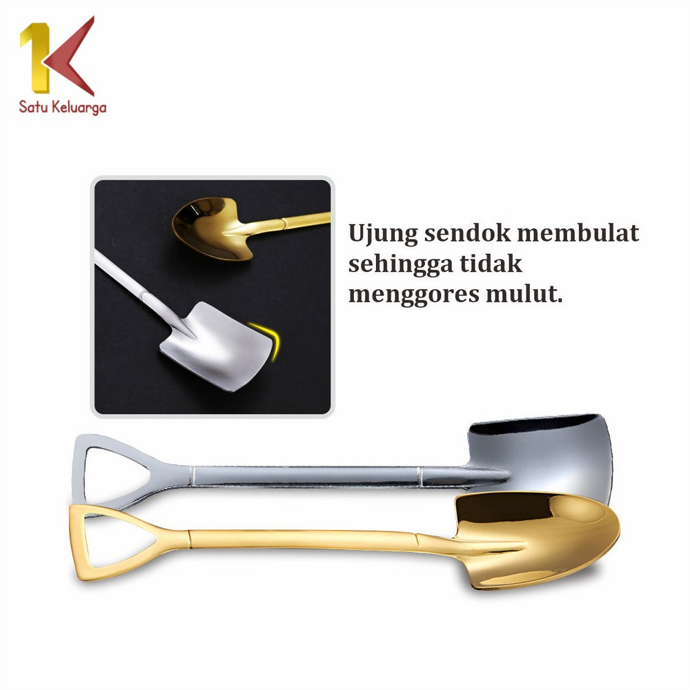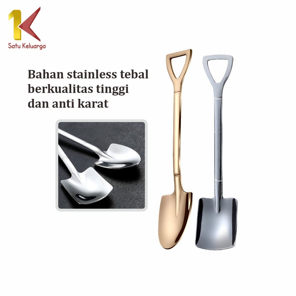 Satu Keluarga Sendok Dessert Bentuk Sekop Besi Stainless C1006 Sendok Puding Kue Skop Aesthetic Lucu Unik Anti Karat / Sendok Sovenir
