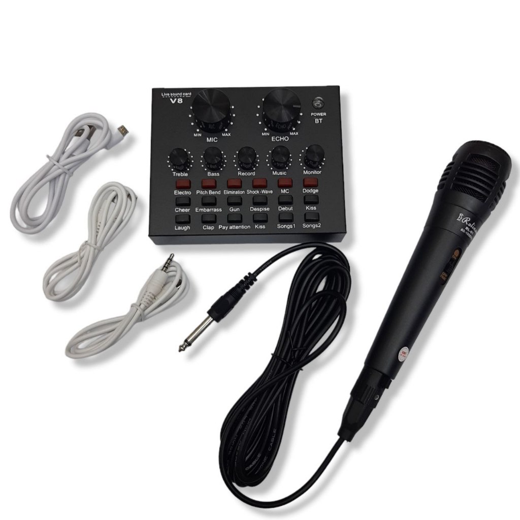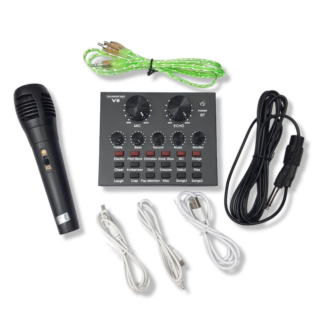 Satu Set Lengkap Alat Karaoke Portable Bluetooth Audio USB External Soundcard Live Broadcast + Microphone Bisa Digunakan Di Komputer Laptop Atau Smartphone