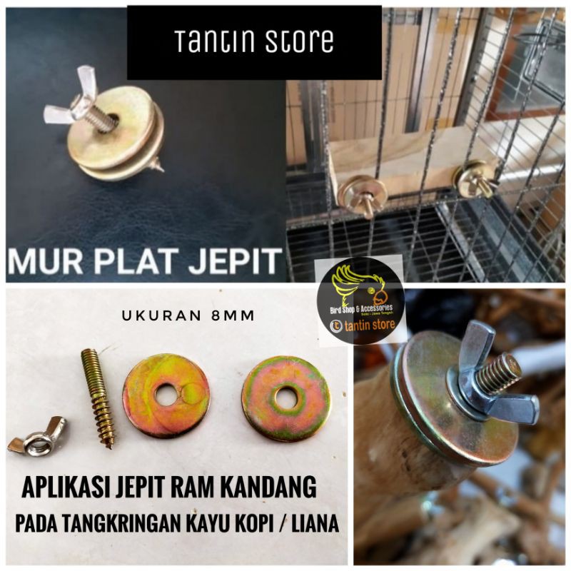 Satu Set Mur Baut Kupu Sistem Jepit Untuk Tangkringan Kayu Kopi atau Liana Pada Kandang Burung