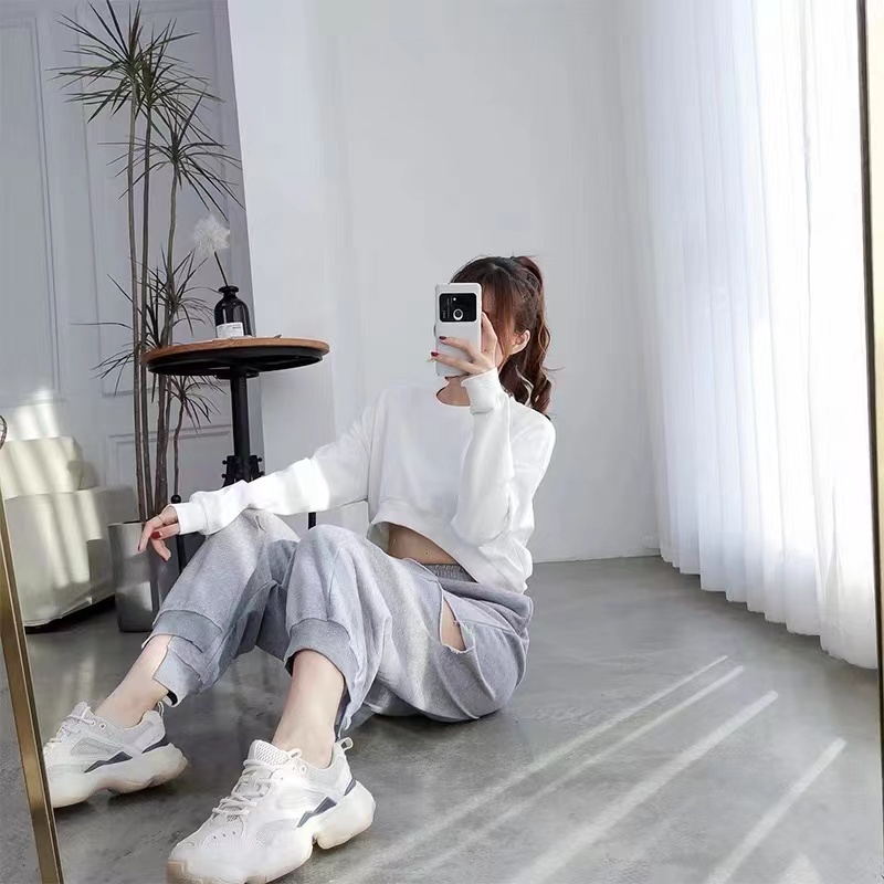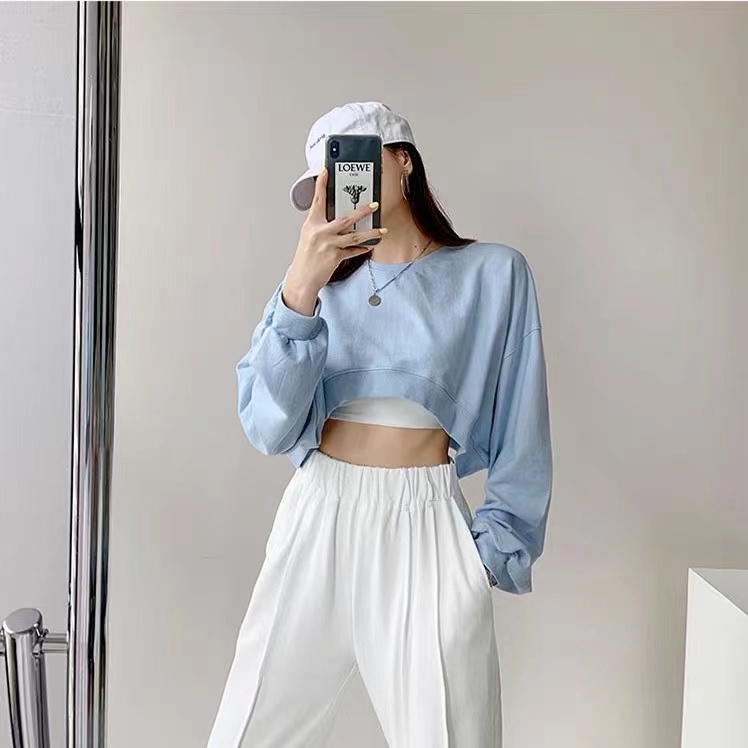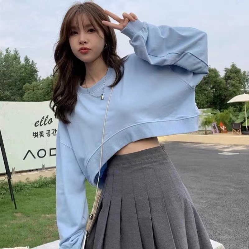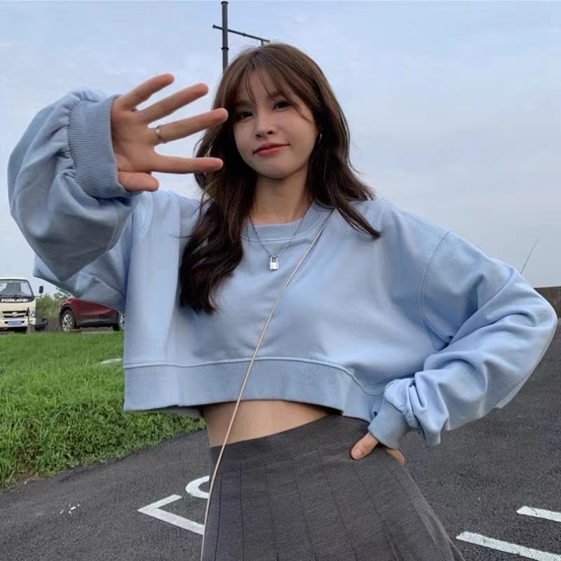Sayishop korean CROP TOP Sweater-kaos lengan panjang