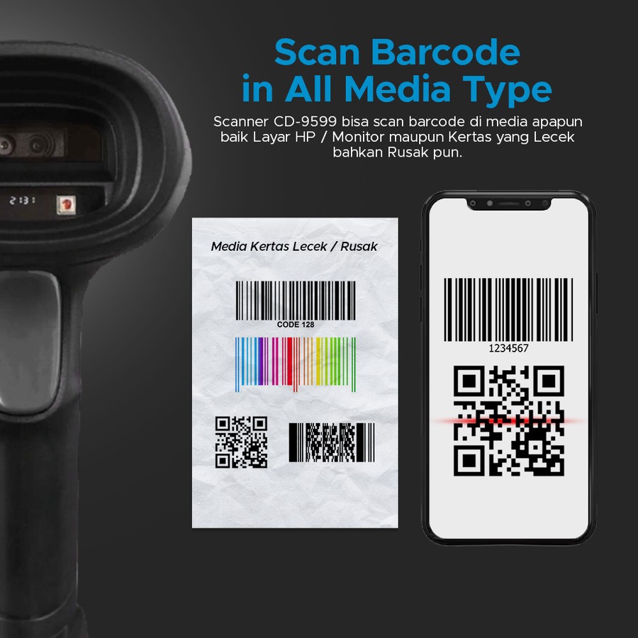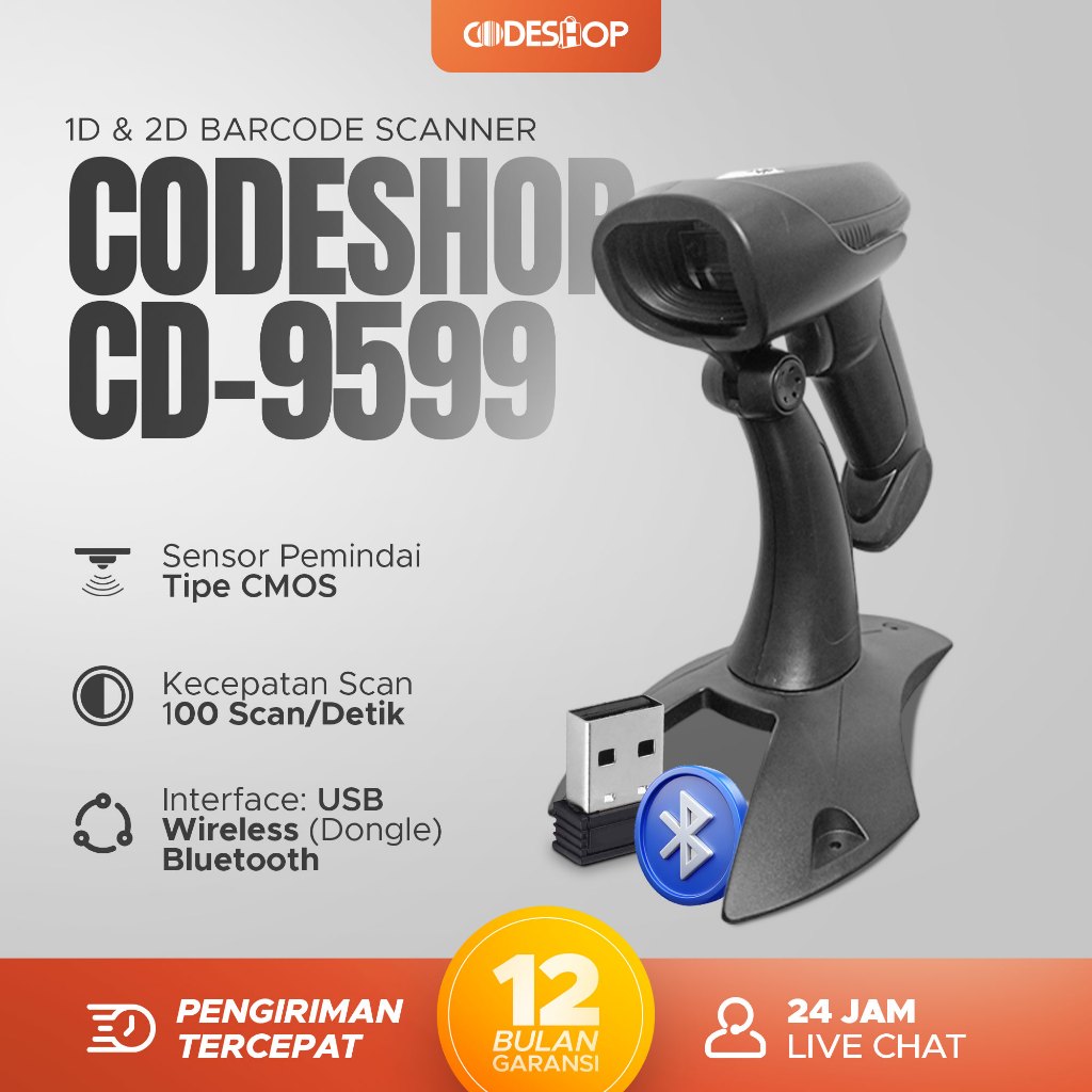 Scanner Barcode Codeshop CD-9599 Wireless Scan 2D 1D QR Code Imager CD9599 USB Bluetooth Dongle Auto Sense Plus Stand