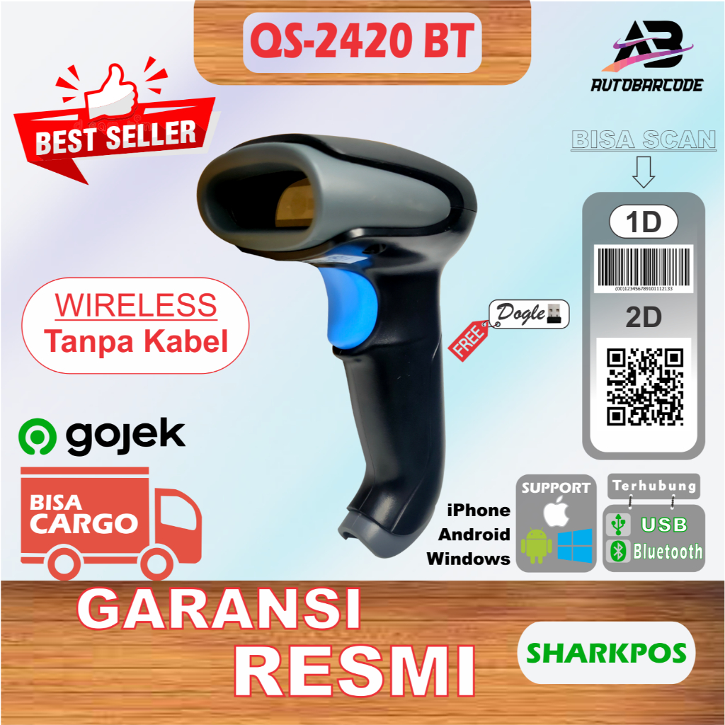 Scanner Bluetooth 2D Sharkpos QS 2400 Wireless Usb Dongle Scan Barcode Qris Autoscan QS2400 QS 2400