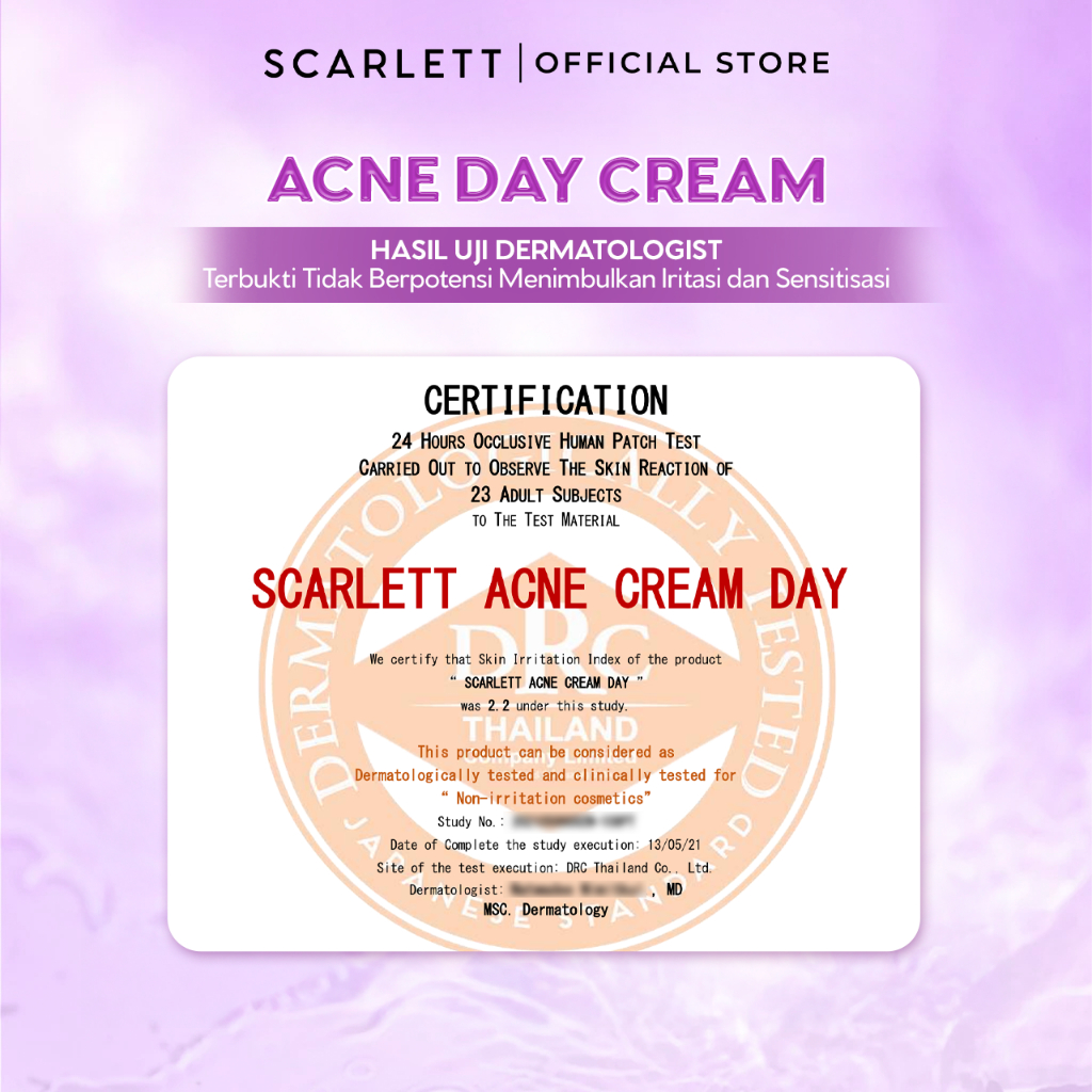Scarlett Whitening Acne Day Cream - Krim Pagi Penghilang & Perawatan Jerawat Ampuh Atasi Hingga Bekasnya with Double Action Salicylic Acid tanpa Bikin Kulit Iritasi