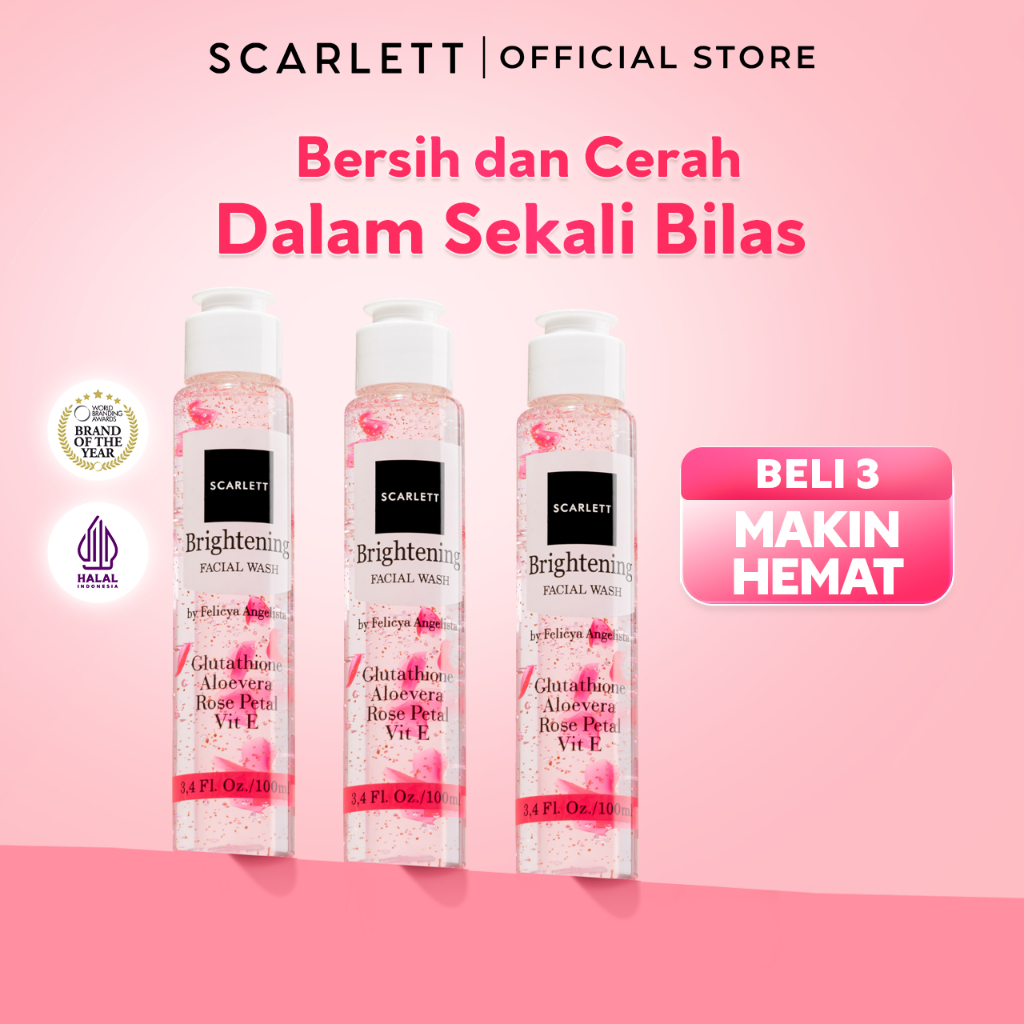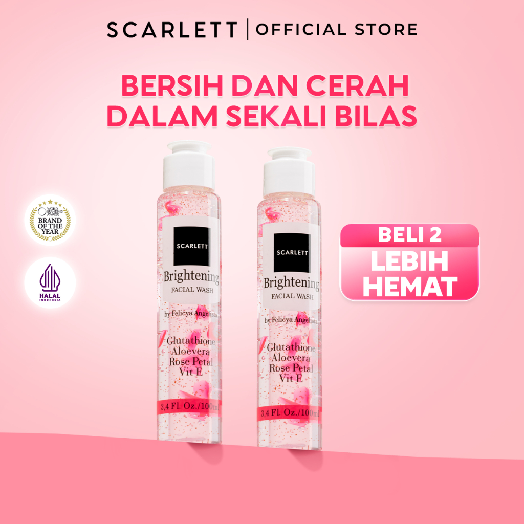 SCARLETT Brightening Facial Wash Untuk Semua Jenis Kulit Membantu untuk Mencerahkan dan Membersihkan Dalam Sekali Bilas dengan Niacinamide Kojic Acid Vitamin E