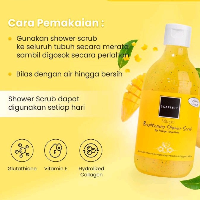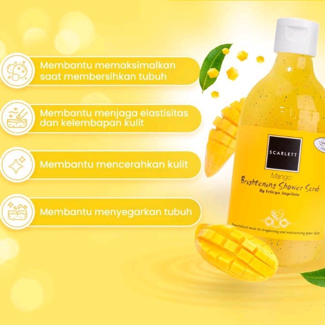 Scarlett Whitening Shower Scrub mango | Sabun mandi scarlett|scarlett original|scarlett shower scrub|shower scrub scarlett| SCARLETT WHITENING VARIAN ORIGINAL by Felicya Angelista