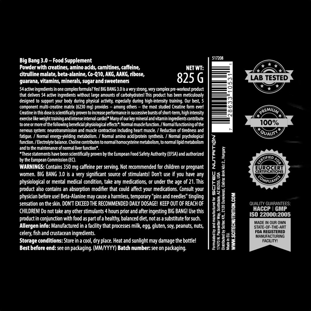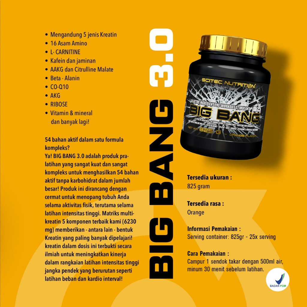 Scitec Nutrition - BIG BANG 825 Gram PRE'WORKOUT Orange Optimum Energy