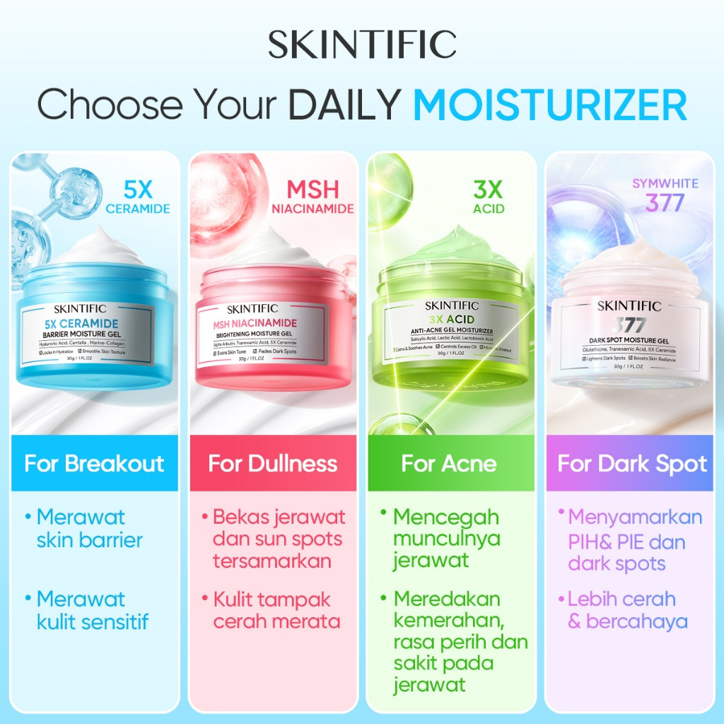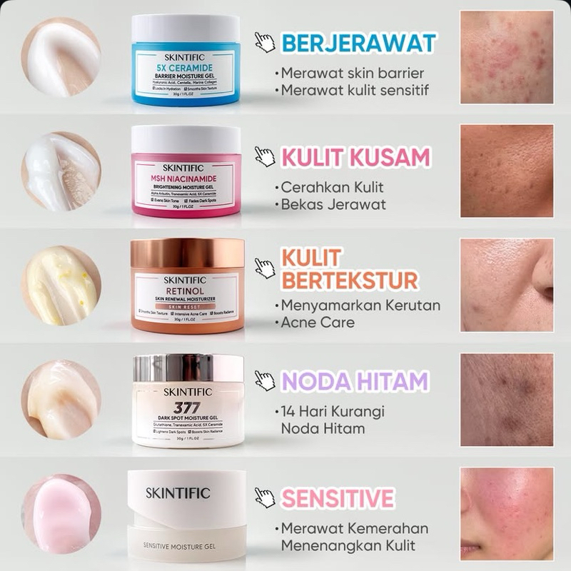 SKINTIFIC MOISTURIZER SERIES - Pelembab Wajah Kulit 5x Ceramide | MSH Niacianmide | Retinol Skin Renewal | Truffle Biome | Symwhite 377 Dark Spot | 5% Panthenol Acne Gel | Sensitive Moisture Gel