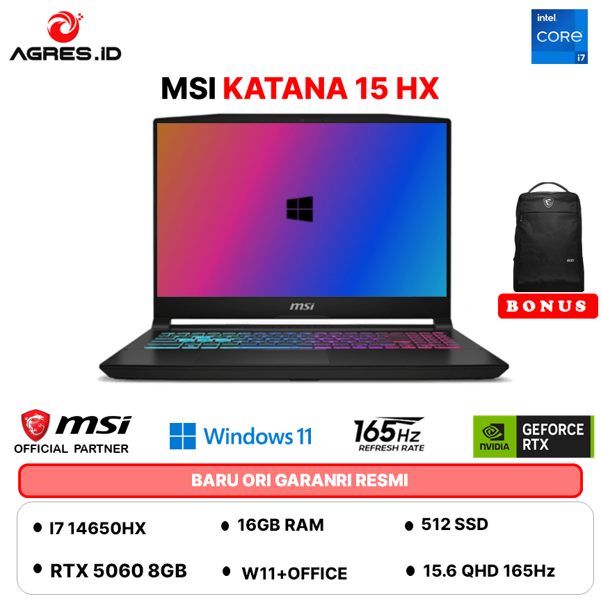 MSI KATANA 15 HX I7 14650HX RTX5060 8GB - RAM 16GB 512GB W11+OHS 15.6QHD 165HZ 100DCIP3 4ZRGB