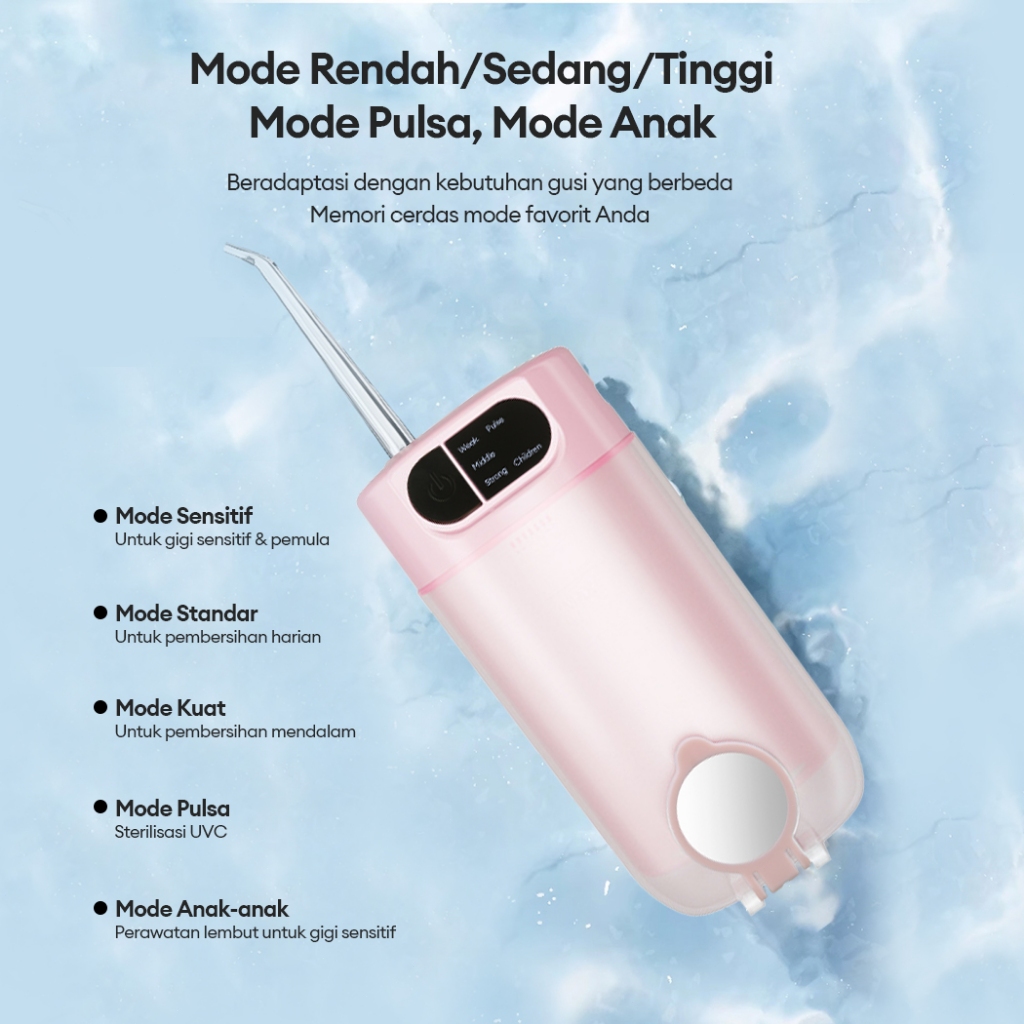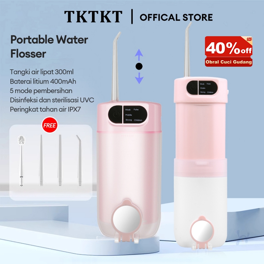 TKTKT 300ml Foldable water floss gigi 5 Mode pembersih Oral Irrigator Dental Water Jet ater Irrigator with 4 Nozzles Scaler Teeth