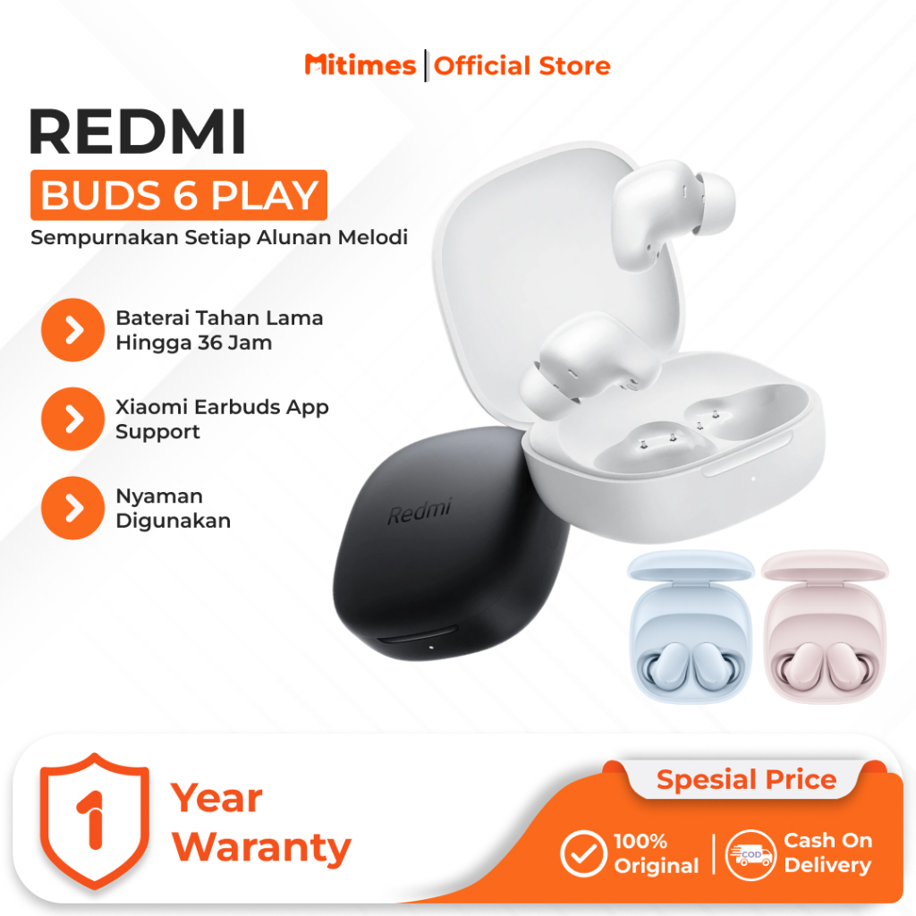 Xiaomi Redmi Buds 6 Play | Google Fast Pair | IPX4 | Bluetooth 5.4 | Bateai Tahan 36 Jam
