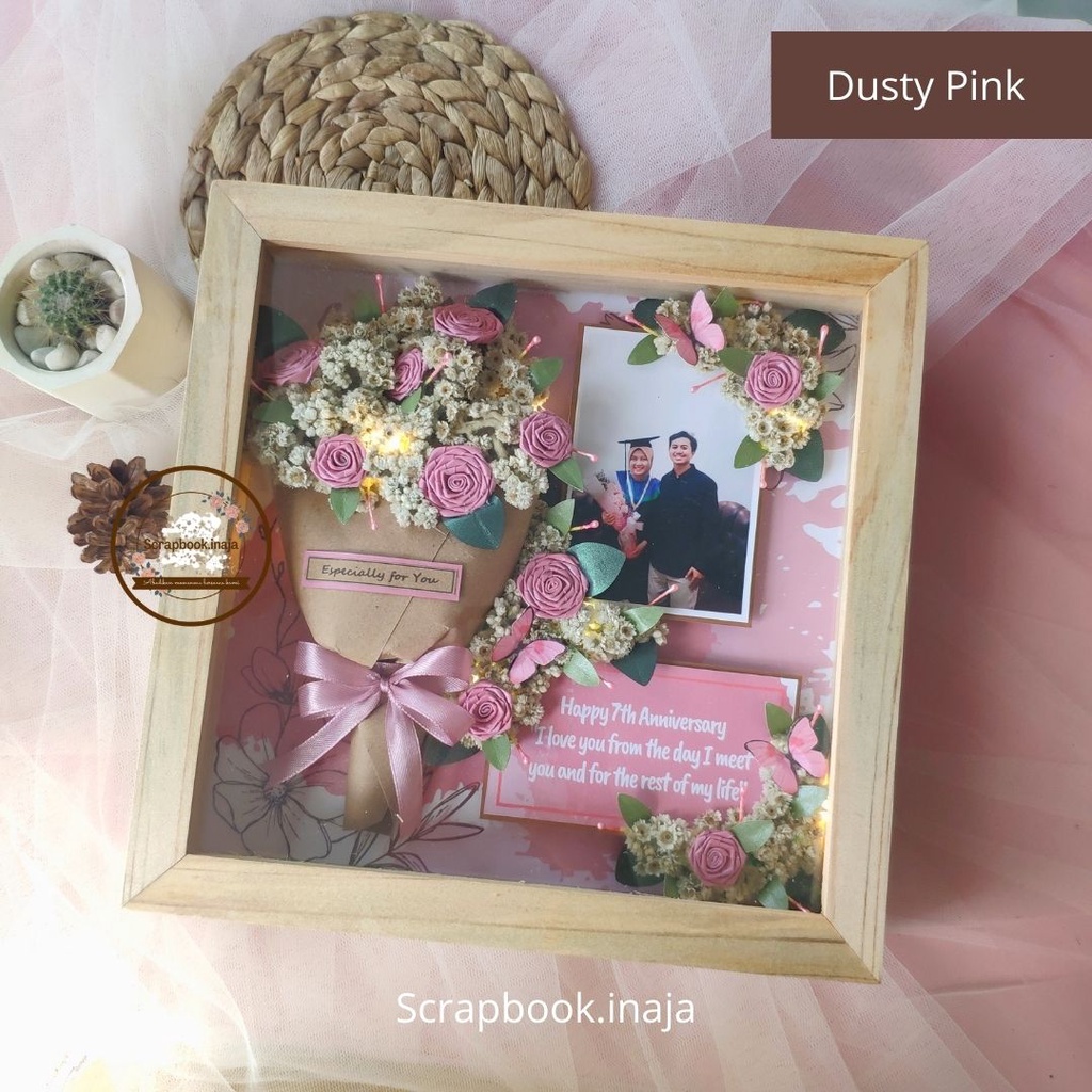 Scrapframe Dried Flower Bucket in Frame 3D Hadiah Wisuda | Kado Anniversary | Birthday Gift | Hadiah Cewek | GIFT FRAME | POPUP FRAME
