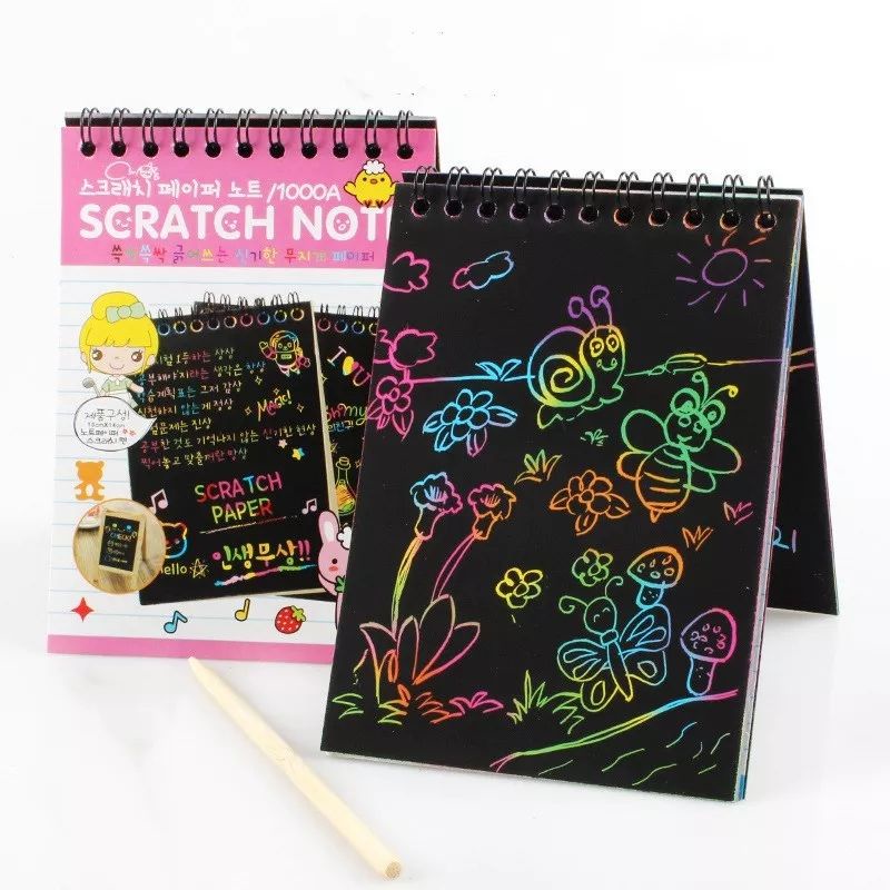Scratch Note Rainbow Colourful Note Pensil Kayu Kertas Hitam Warna Warni