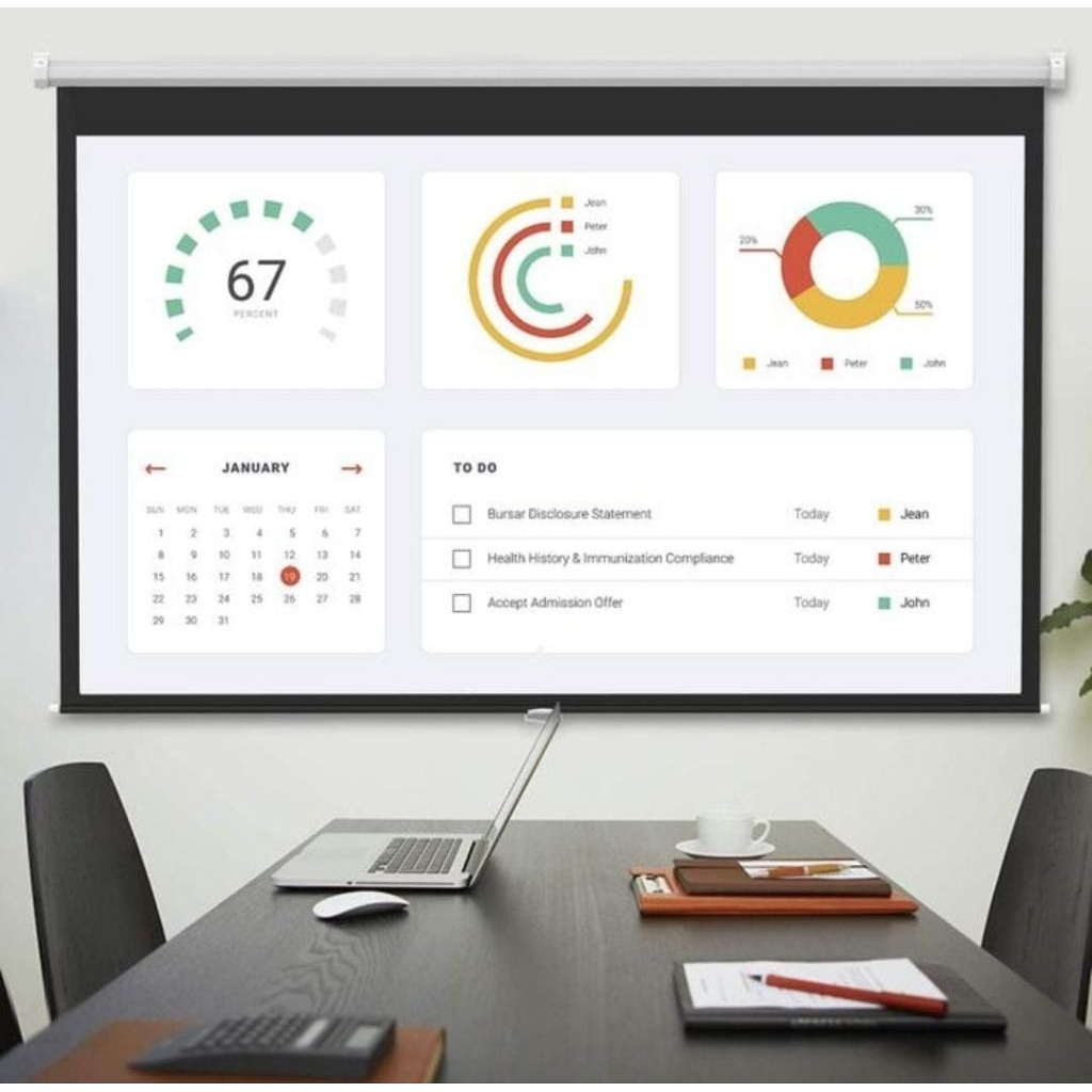 Screen Projector Manual 70" inch 1.1 - Lebar 180 cm x Tinggi 180 cm / Layar Proyektor Manuall Tarik