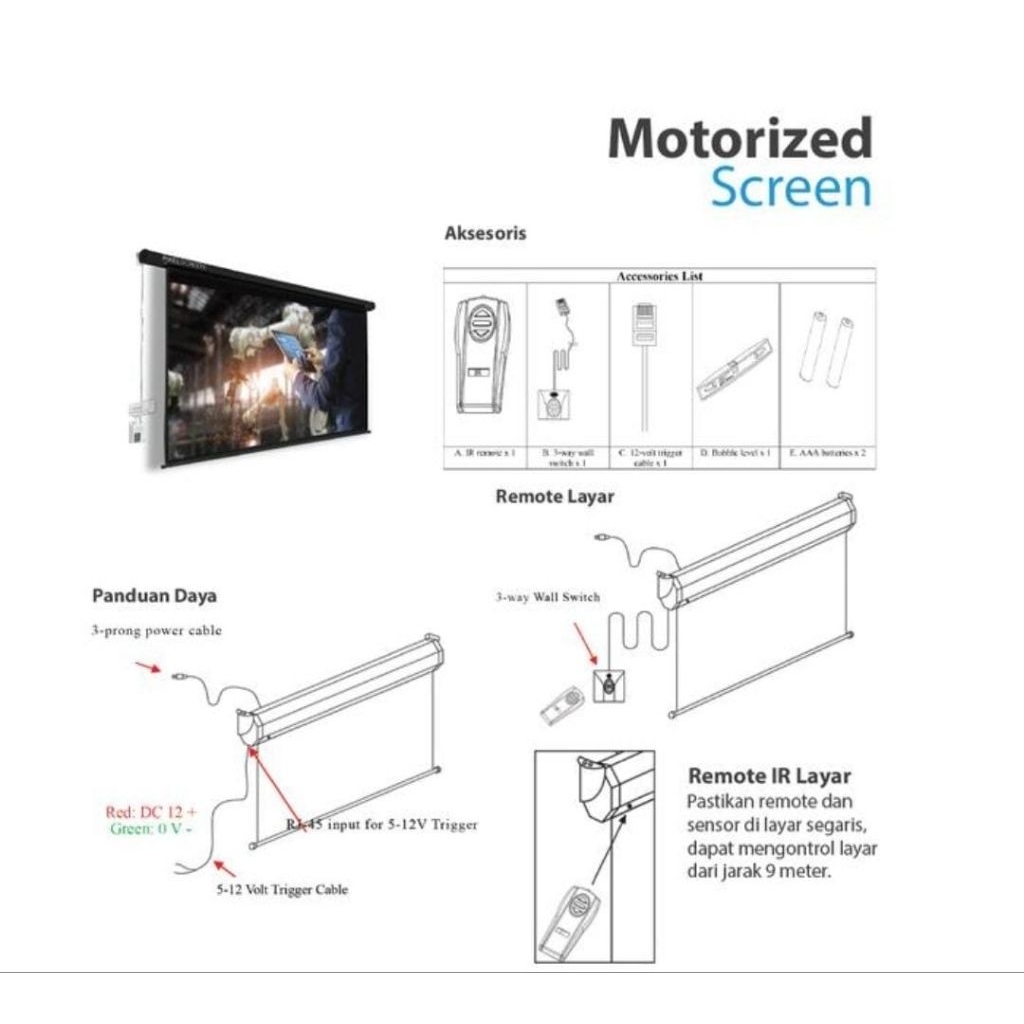 Screen Projector Motorized 96" inch - Lebar 245 cm x Tinggi 245 cm / Layar Proyektor Elektrik [ RASIO 1.1 ]