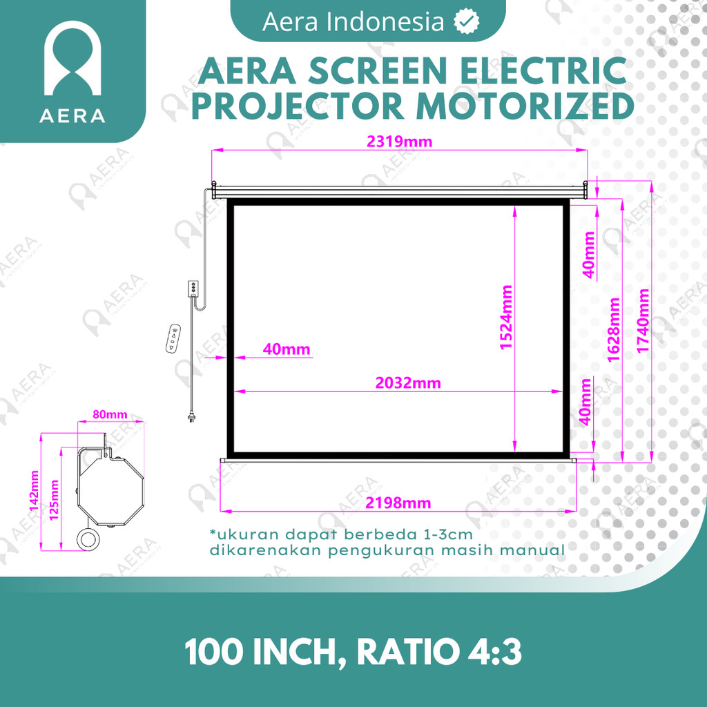 Layar Proyektor Elektrik Motorized 100 Inch 16:9 / 4:3 | Layar Proyektor Gantung Otomatis With Remote | Screen Projector Motorized