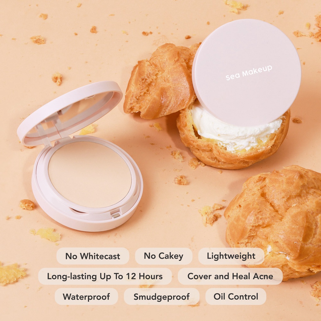 Sea Makeup Acne Cover & Smooth Two Way Cake Pressed Powder and Matte Bedak Padat Compact Powder with Salicylic Acid + Ceramide + Safflower seamakeup Official Store