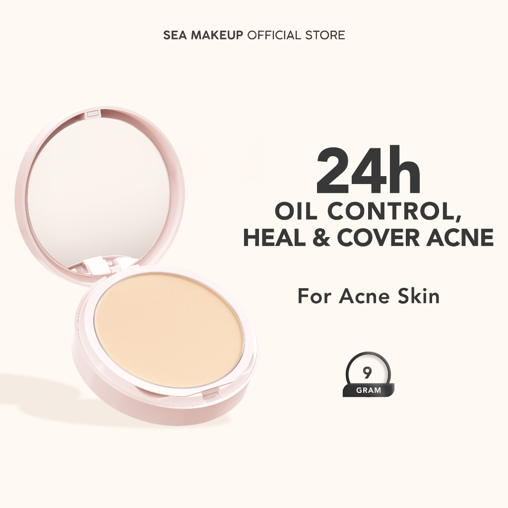 Sea Makeup Acne Cover & Smooth Two Way Cake Pressed Powder and Matte Bedak Padat Compact Powder with Salicylic Acid +ceramide