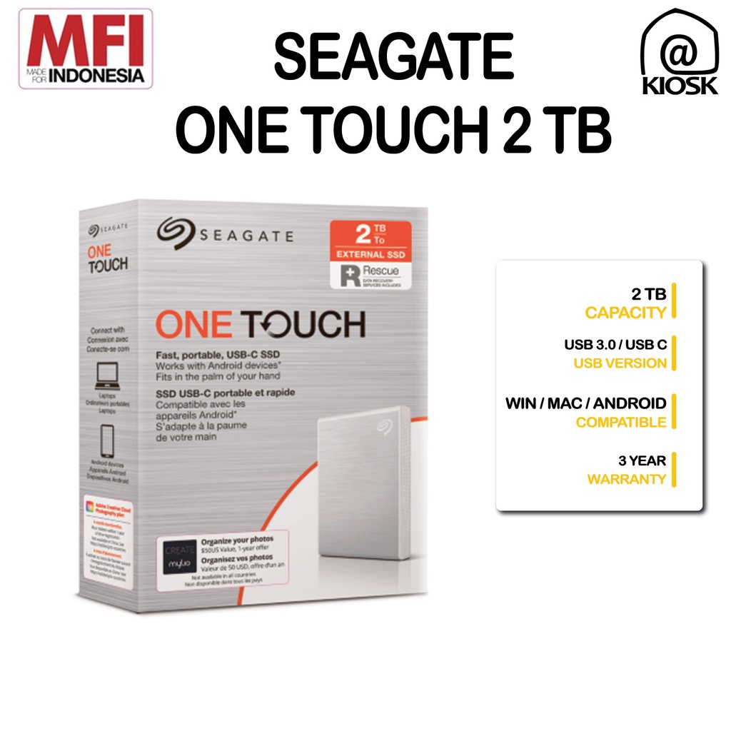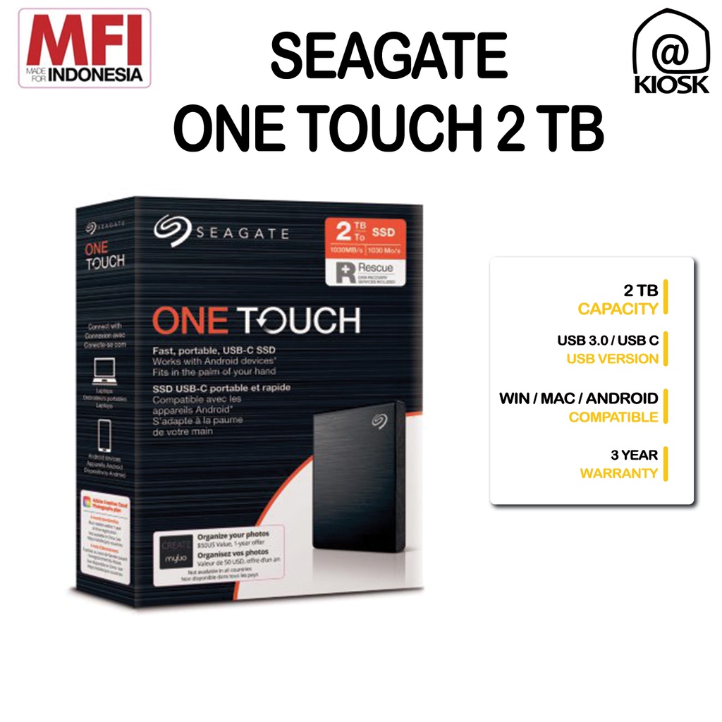 Seagate One Touch SSD - External SSD 2TB - USB 3.0 - Compatible Windows Mac / Garansi 3 Tahun