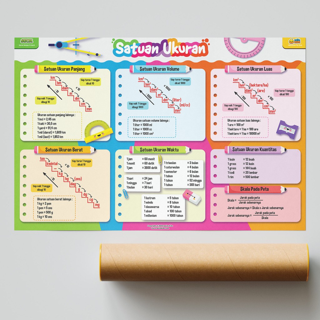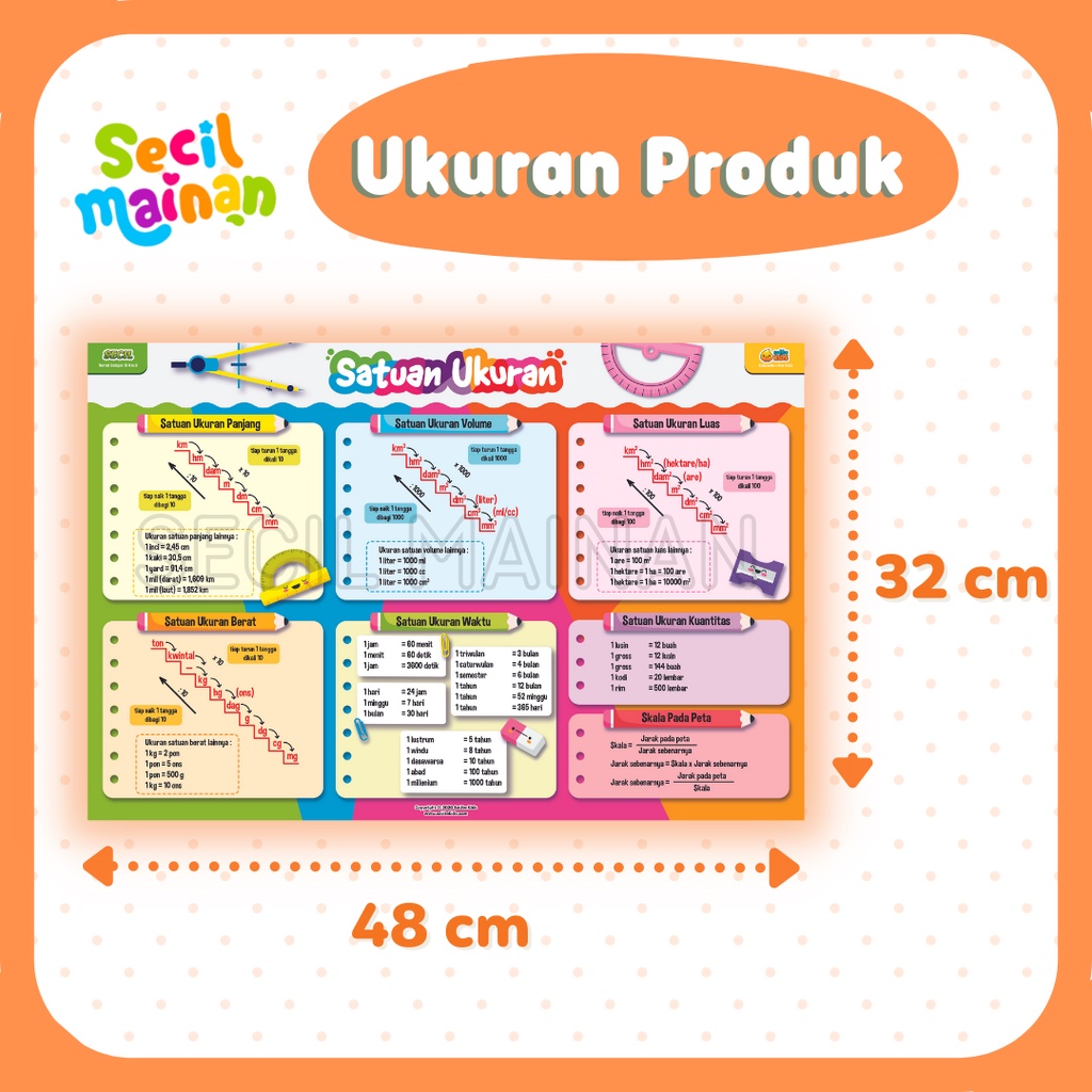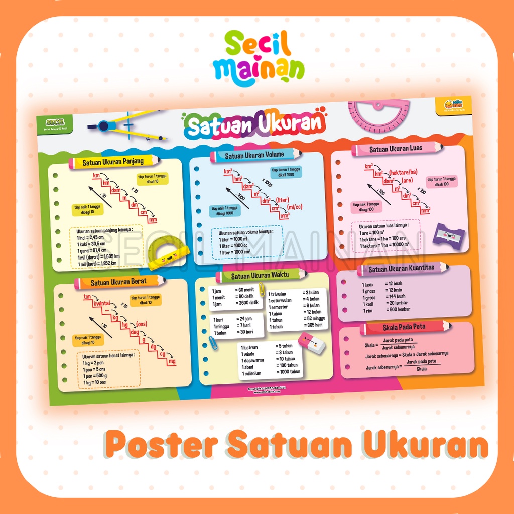 Secil Mainan | Poster Tabel Satuan Ukuran CM KG Liter untuk Anak SD PREMIUM