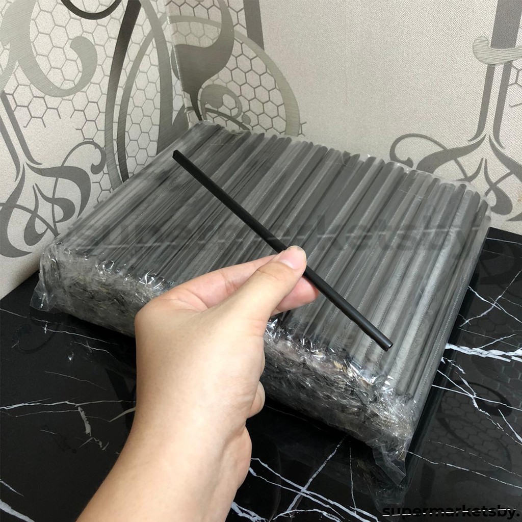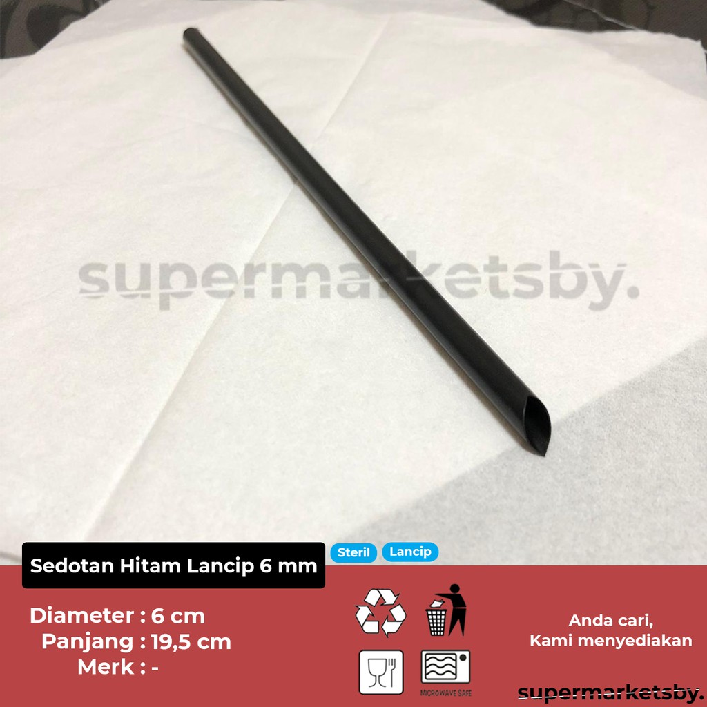 Sedotan Hitam Lancip 6 mm Steril / Sedotan Minuman Hitam 6 mm Lancip / Tekuk Bungkus
